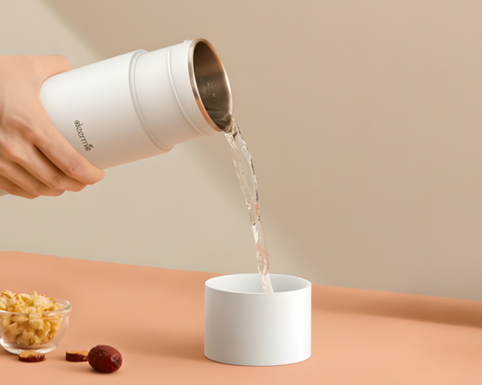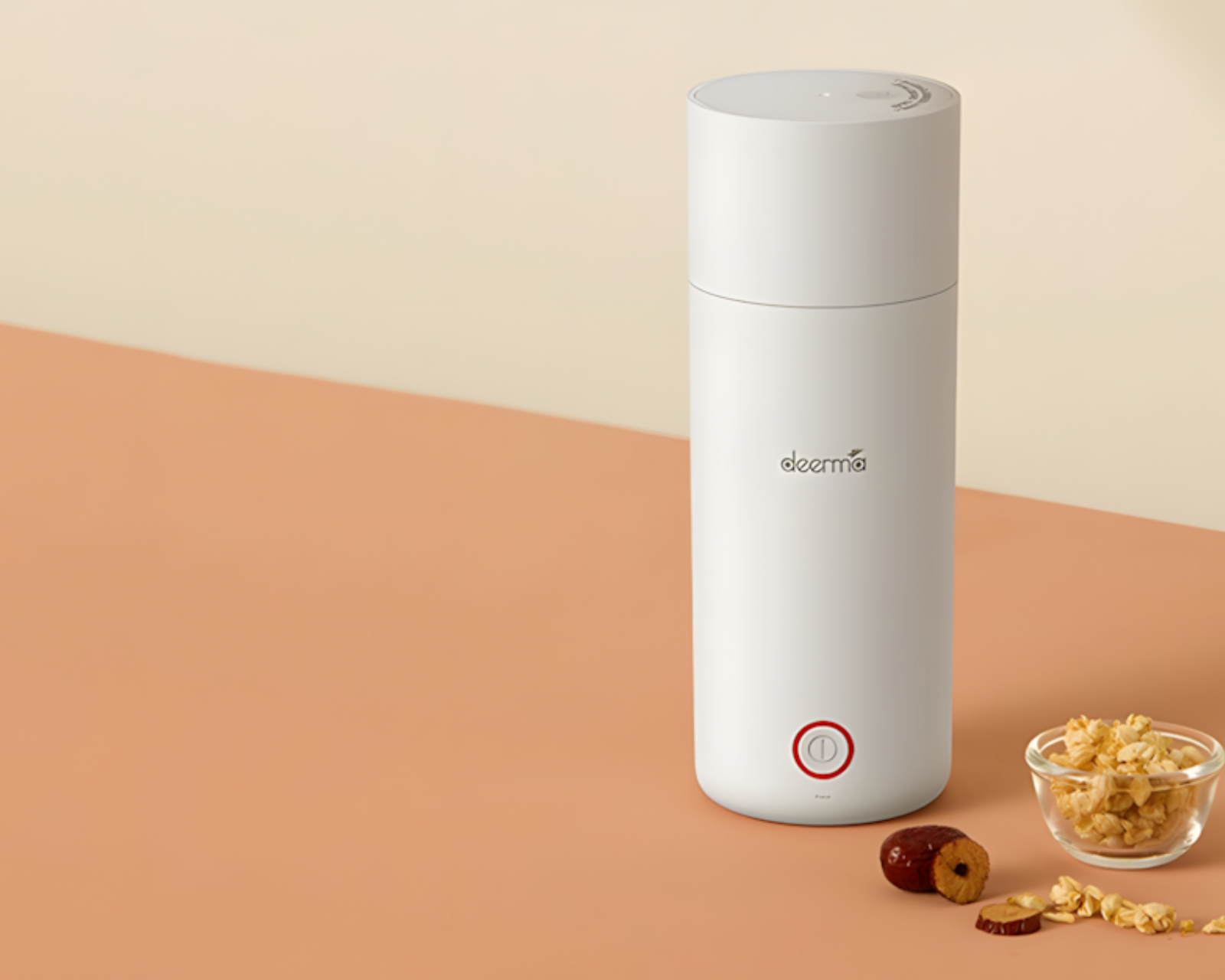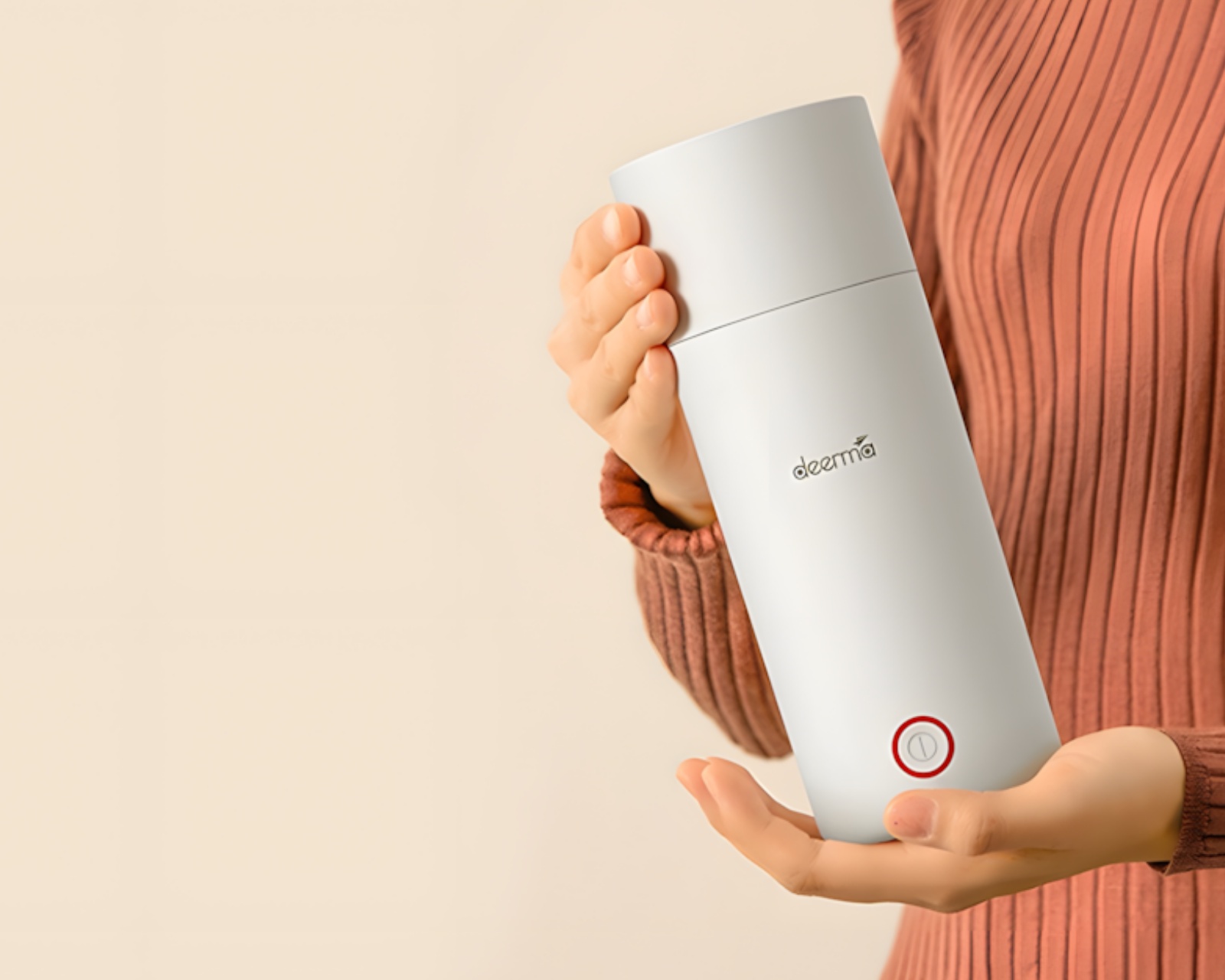 A practical kettle from Deerma that offers both boiling and thermofunction in a compact unit. It has a capacity of 350 ml and is made of durable 304 stainless steel, ensuring long-lasting use. The product is designed to be lightweight and portable, making it ideal for use at home, in the office, or while traveling.The unit is equipped with three layers of thermal insulation, allowing the hot contents to maintain temperature longer when unplugged. It also features a safety valve system with three valves to ensure effective evaporation and increased safety. The one-button technology makes it user-friendly, and the non-slip silicone pad ensures stability during use. The cables are detachable for easier transport and storage.