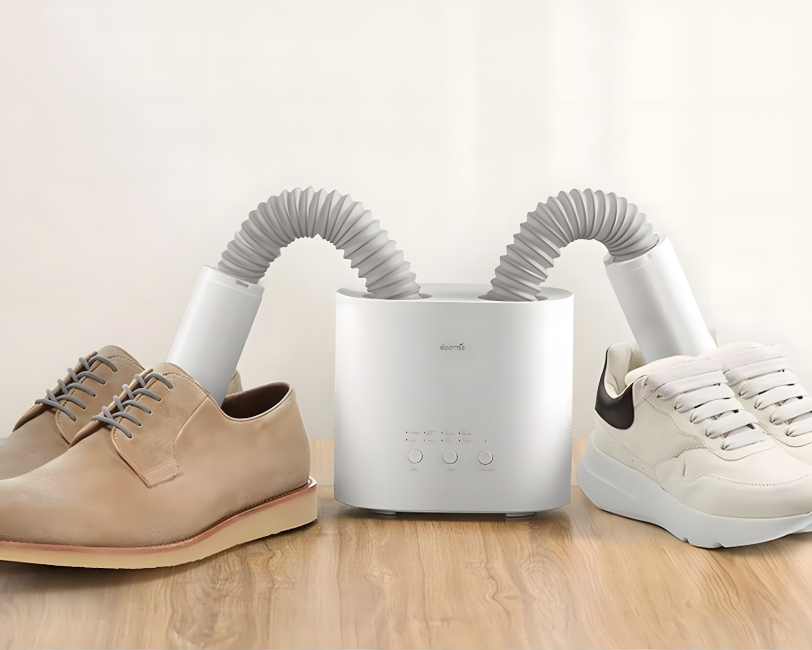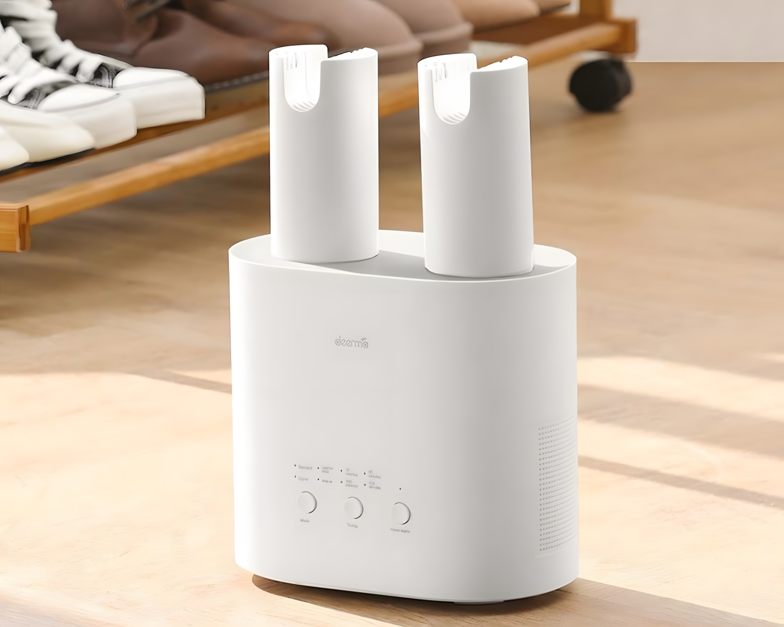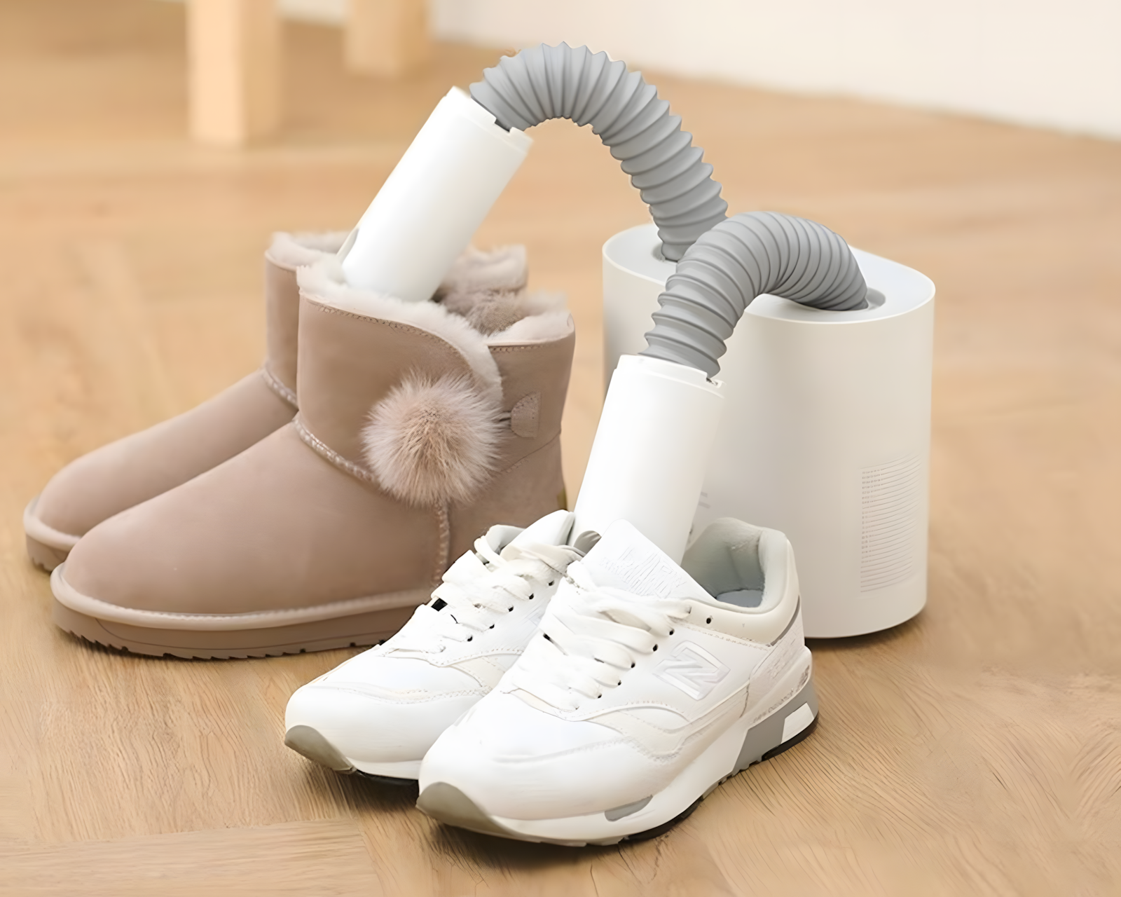 A high-performance shoe dryer from Deerma that effectively dries wet shoes and prevents bacterial growth. With a temperature adjustment between 30-55°C, it eliminates 99.9% of bacteria and mold without damaging the shoes. The ceramic ozone generator ensures that odors and moisture are effectively removed, giving you dry and comfortable shoes even on cold days.The device features four drying modes that make it versatile for different types of shoes, including leather and sneakers. The 27 cm long hose reaches deep into the shoes and ensures that every part is properly dried. The special attachment for high shoes guarantees stability and effective drying, making it ideal even for boots. The dryer's safety system includes a temperature regulator and overheating protection that further enhances user safety.