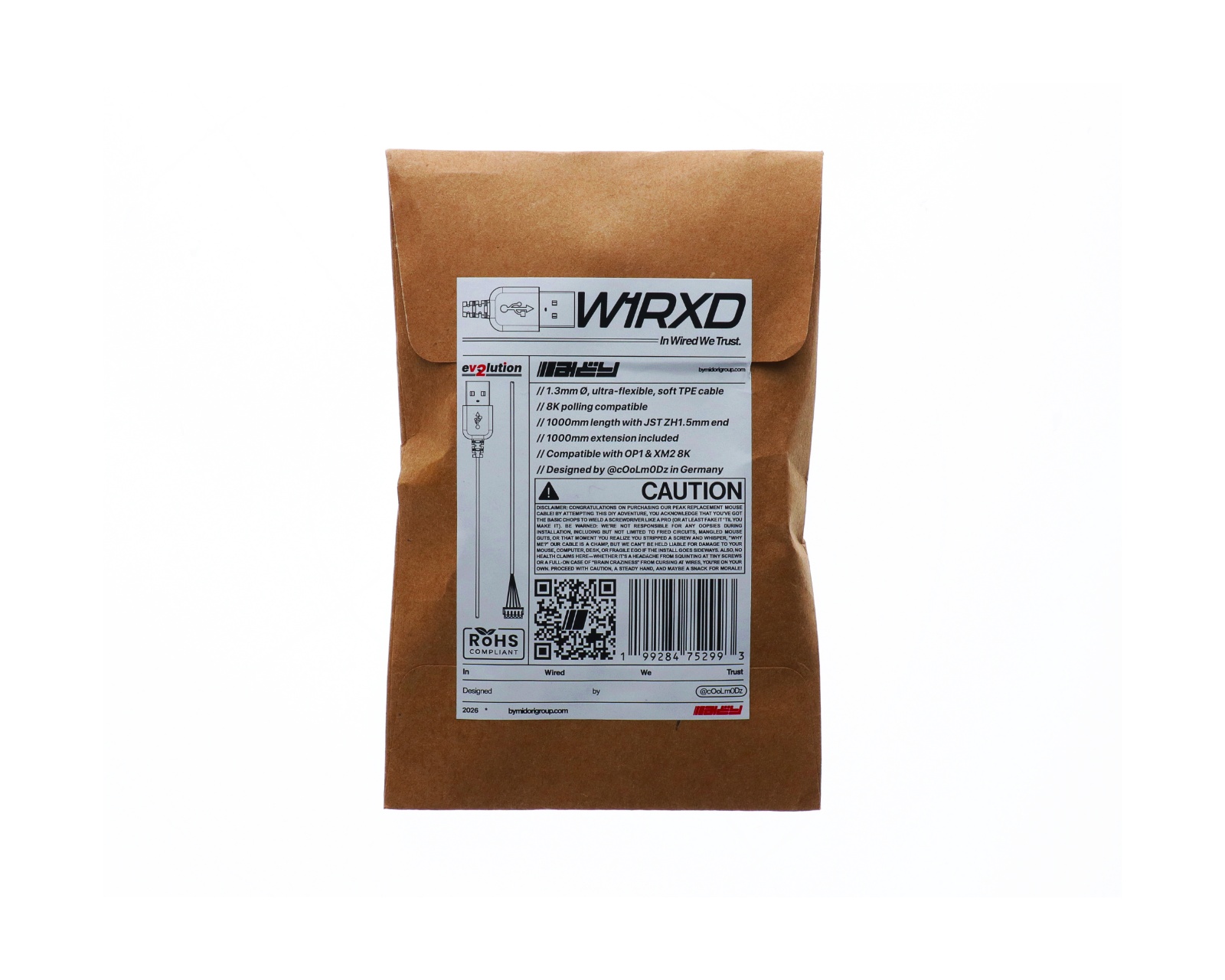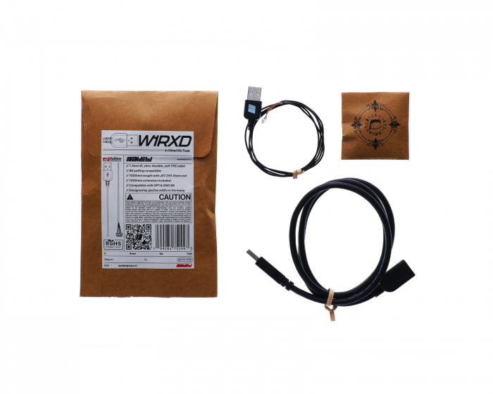 W1RXD eV2lution is a flexible TPE cable with a diameter of 1.3 mm that is fully compatible with 8K polling rate, ensuring fast and responsive signals during gameplay.The 1000 mm long main cable comes with a 1000 mm long black extension cable, providing extra flexibility and freedom of movement. The cable is compatible with OP1 8k, OP1 8k V2, XM2 8K, and XM2 8k V2.