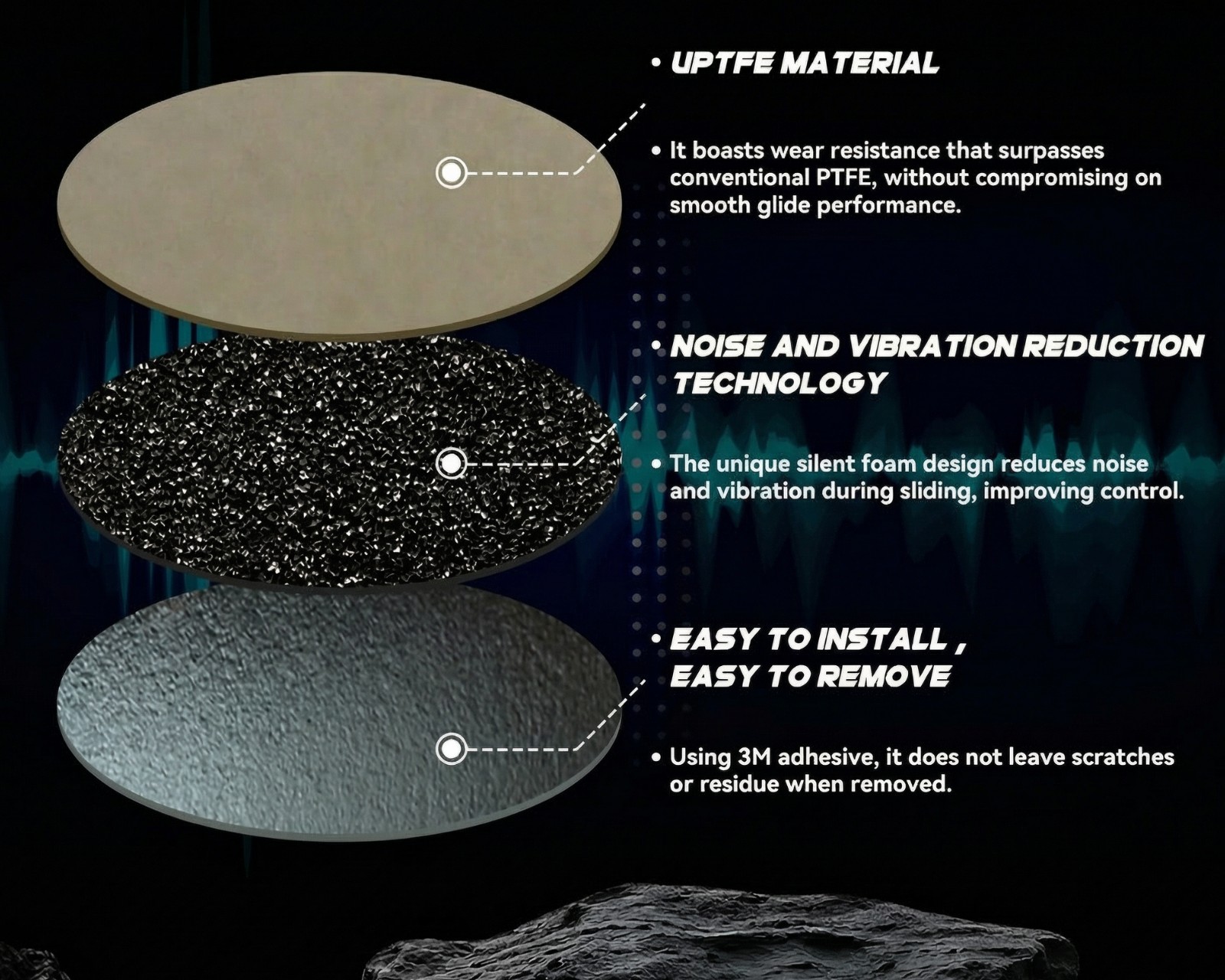 Thanks to a super round edge polishing process, the skates have a smooth surface that minimizes friction, providing smooth and fast movement. The included 3M technology makes installation and removal easy, without leaving sticky residue. Additionally, the quiet foam design reduces both noise and vibrations, providing improved control and stability during play.