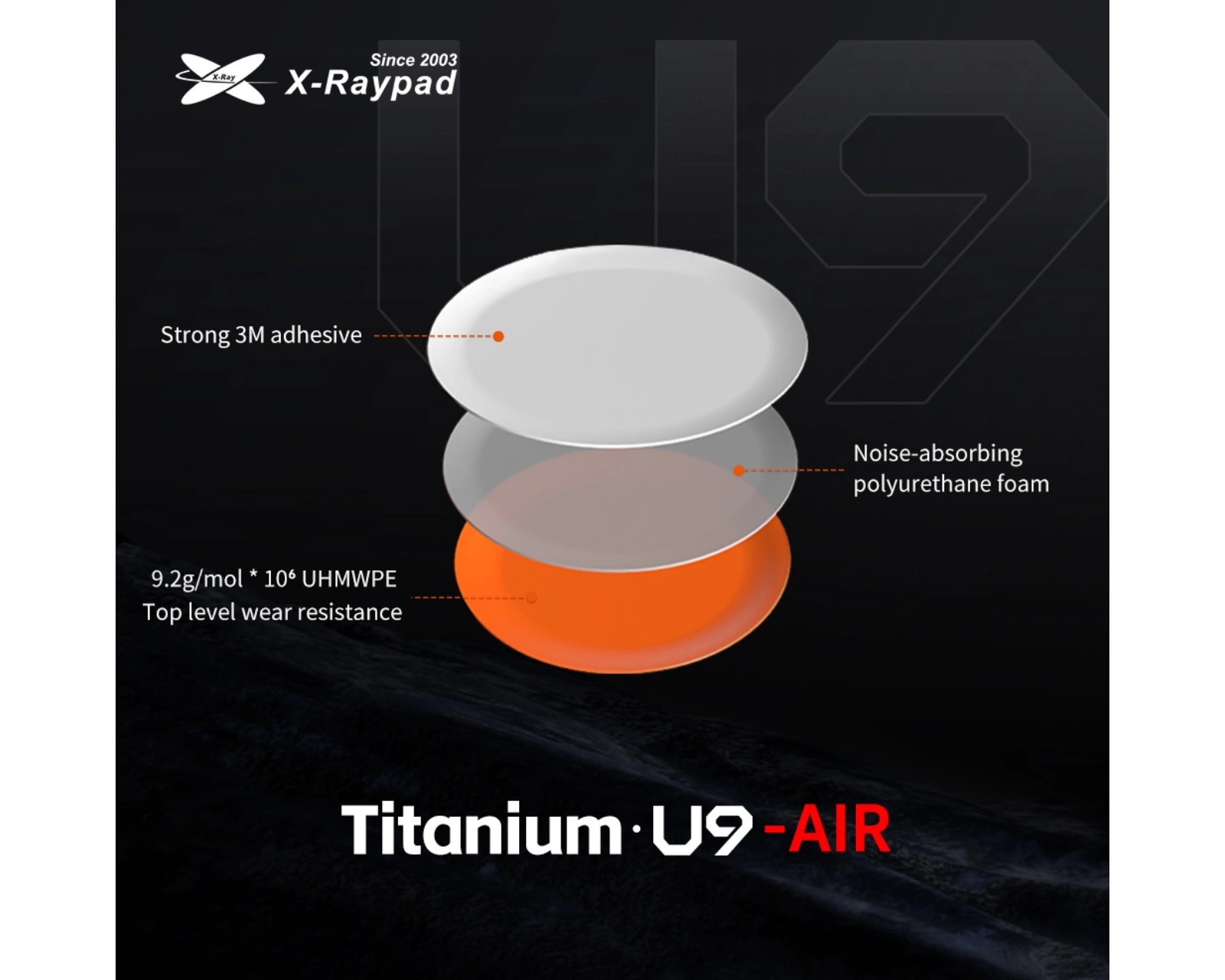 The U9 Air 6.5mm is a dot skate from X-raypad that offers high durability and stability. This product is specifically designed to be compatible with glass mouse pads while still working with cloth mouse pads. With a diameter of 6.5mm and built with a multi-layer system, the U9 Air provides consistent and accurate firing for gamers who seek precision in every move.The U9 Air is engineered to withstand wear and tear, using ultra-high molecular weight polyethylene (UHMWPE) to ensure long life and minimal wobble. This skate is designed to provide agility and responsiveness, resulting in more precise control. The skate includes a sound-deadening layer design to reduce the sound of sliding, contributing to a more focused advanced gaming experience. The U9 Air also includes two alcohol pads and two adhesive removal wipes for easy installation and maintenance.