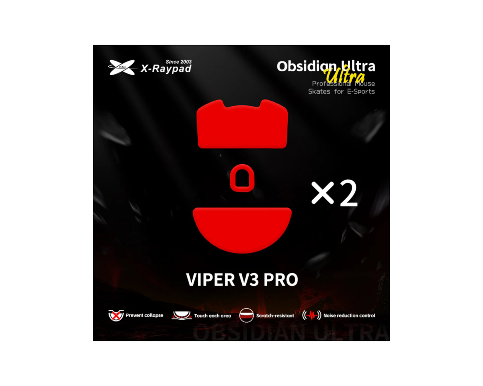 Jade Ultra skates are mouse skates from X-raypad that offer an optimized glide surface and improved stability. Made of pure PTFE with a thickness of 1 mm (+/-0.1 mm), these skates are specifically designed to enhance mouse movements, making them suitable for gamers who want precise and smooth gliding.They are compatible with both fabric and plastic mouse pads, but are not intended for use on glass surfaces. Additionally, they feature an extra filling layer that reduces noise and vibrations during use.The PTFE material is known for its durability and scratch resistance, which prevents the decline of the skate surface. This ensures a consistent user experience over multiple gaming sessions. The skates are designed to maximize the contact area with the mouse and improve motion control while reducing noise levels, creating a quieter atmosphere.