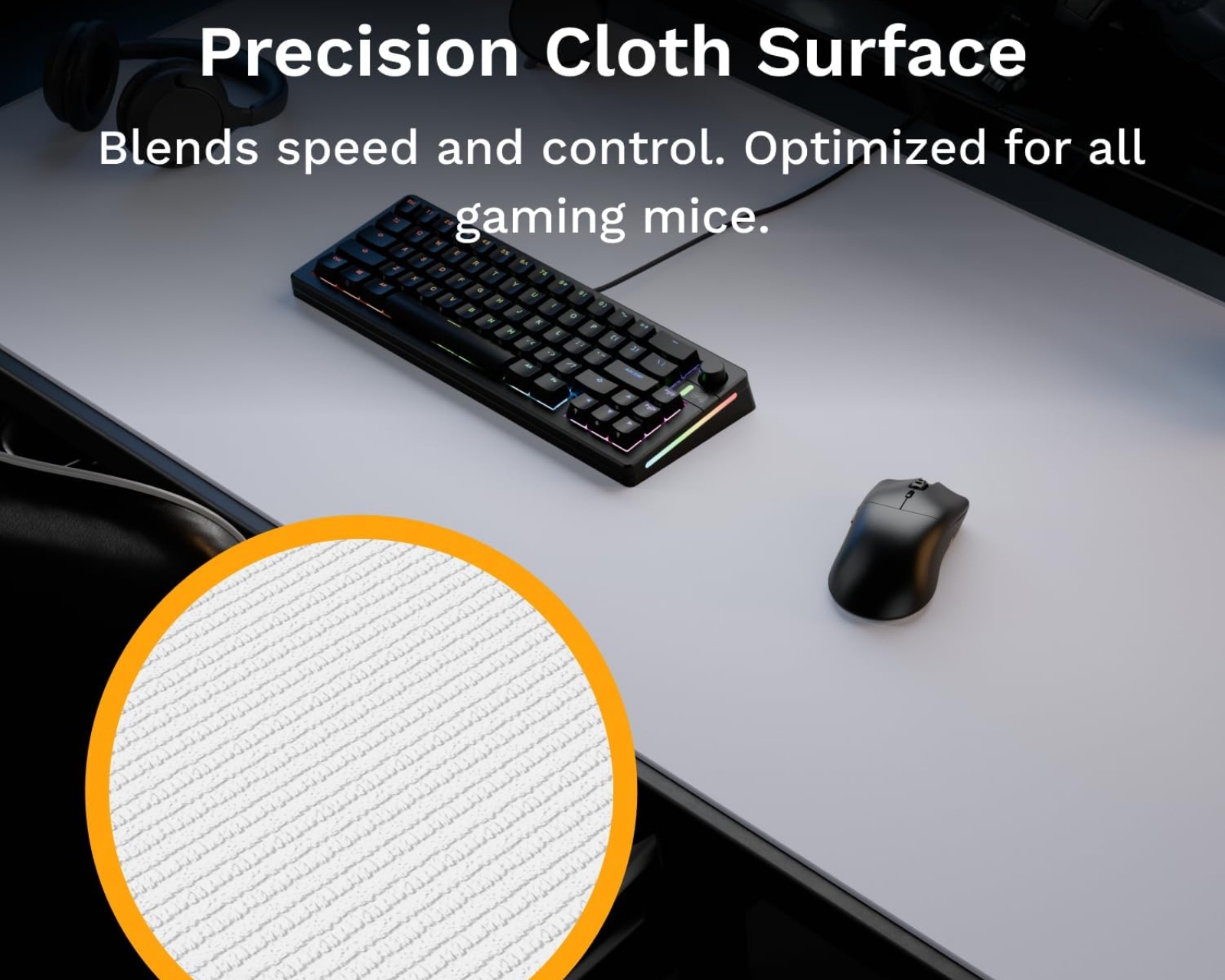 The surface of GMP 2 is made from a tightly woven fabric that provides a smooth and fast glide, with enough resistance to allow for precise control. The mousepad features a spill-resistant barrier that causes liquids to bead up on the surface for easy cleaning and maintains the mousepad's glide over time. The low-profile seams help prevent fraying and provide comfort during long gaming sessions, while sitting flush with the surface. The mat offers consistent glide speed in all directions, making it easier for the gamer to focus on the game rather than the movement.