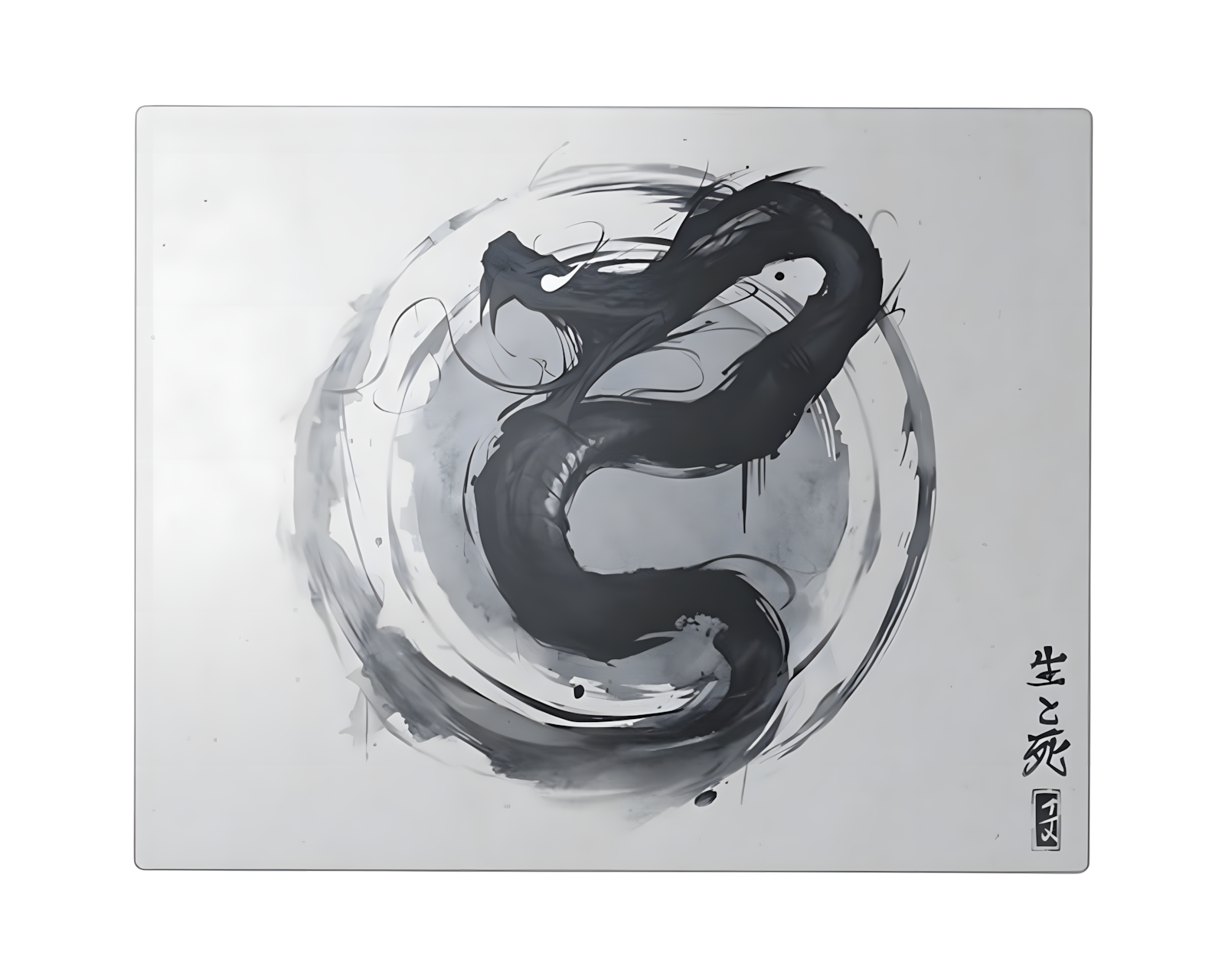 KIN X Life & Death is a mouse pad from TJ Exclusives that offers a graphic surface with a hand-drawn illustration by artist DrawnByCaleb. This unique mouse pad is designed for gamers and has a professional surface that provides optimal glide for the mouse. KIN X is available in two color options: red & white and gray & white. Please note that the gray and white version has a more minimalist character.The KIN X series mouse pad is built with a high-performance surface for a smoother feel and improved gliding ability. It features a new all-silicone anti-slip base that ensures it stays stable on your desk during intensive use. The mat is 3mm thick, which is an adjustment from the previous 4mm. The surface is carefully designed to generate an optimal gaming experience, regardless of the gaming situation. The technology behind the KIN X emphasizes the importance of every gaming decision in the struggle between life and death, which is reflected in its unique design.