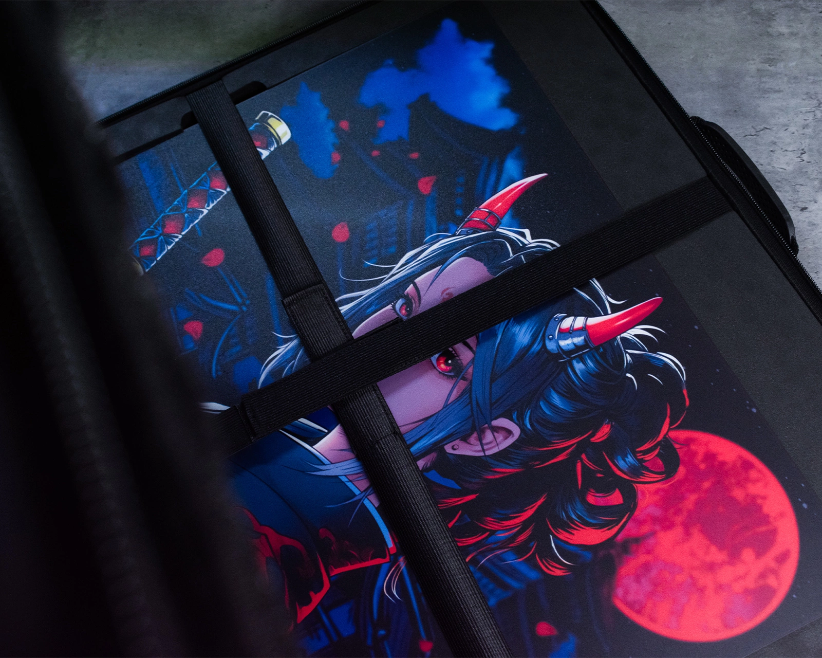 Vault-X includes a carrying case for the mouse pad, which protects it during transport. As well as a Limited Edition Oni's Oath card deck.