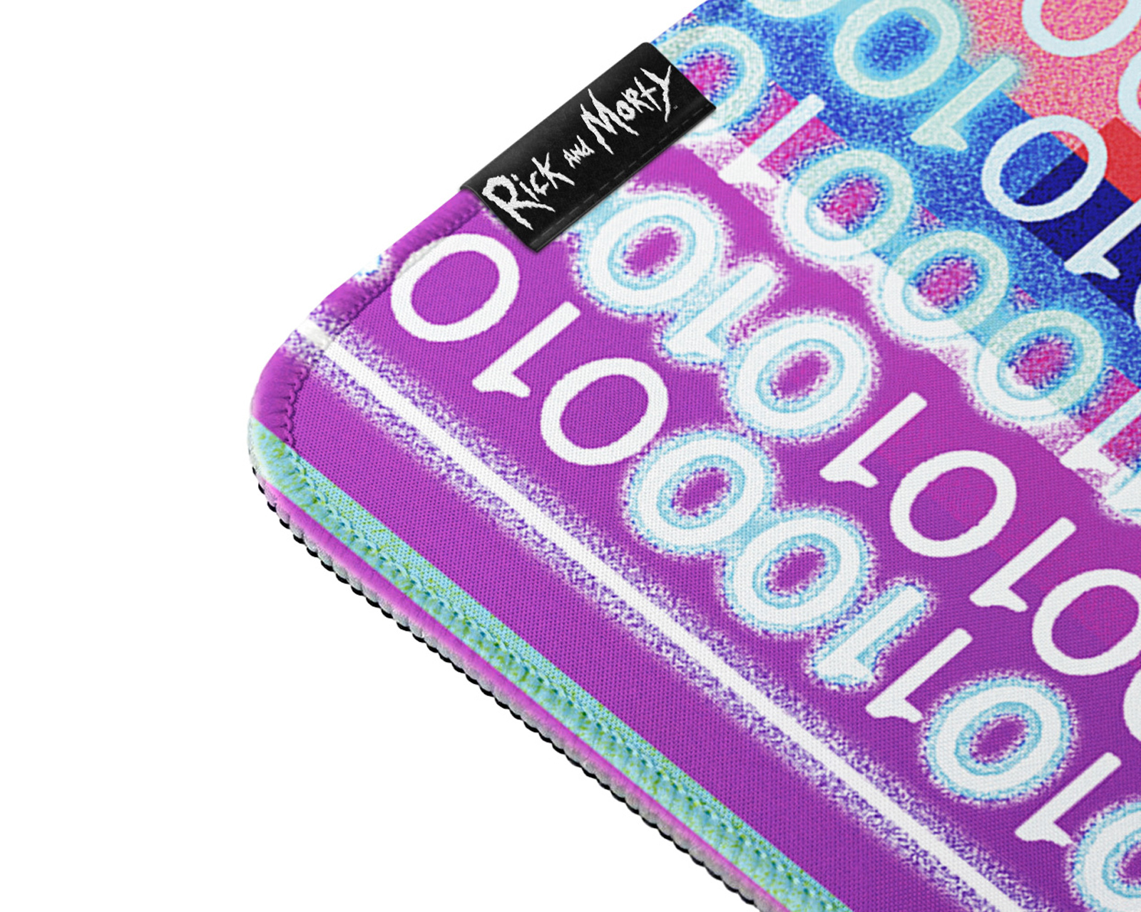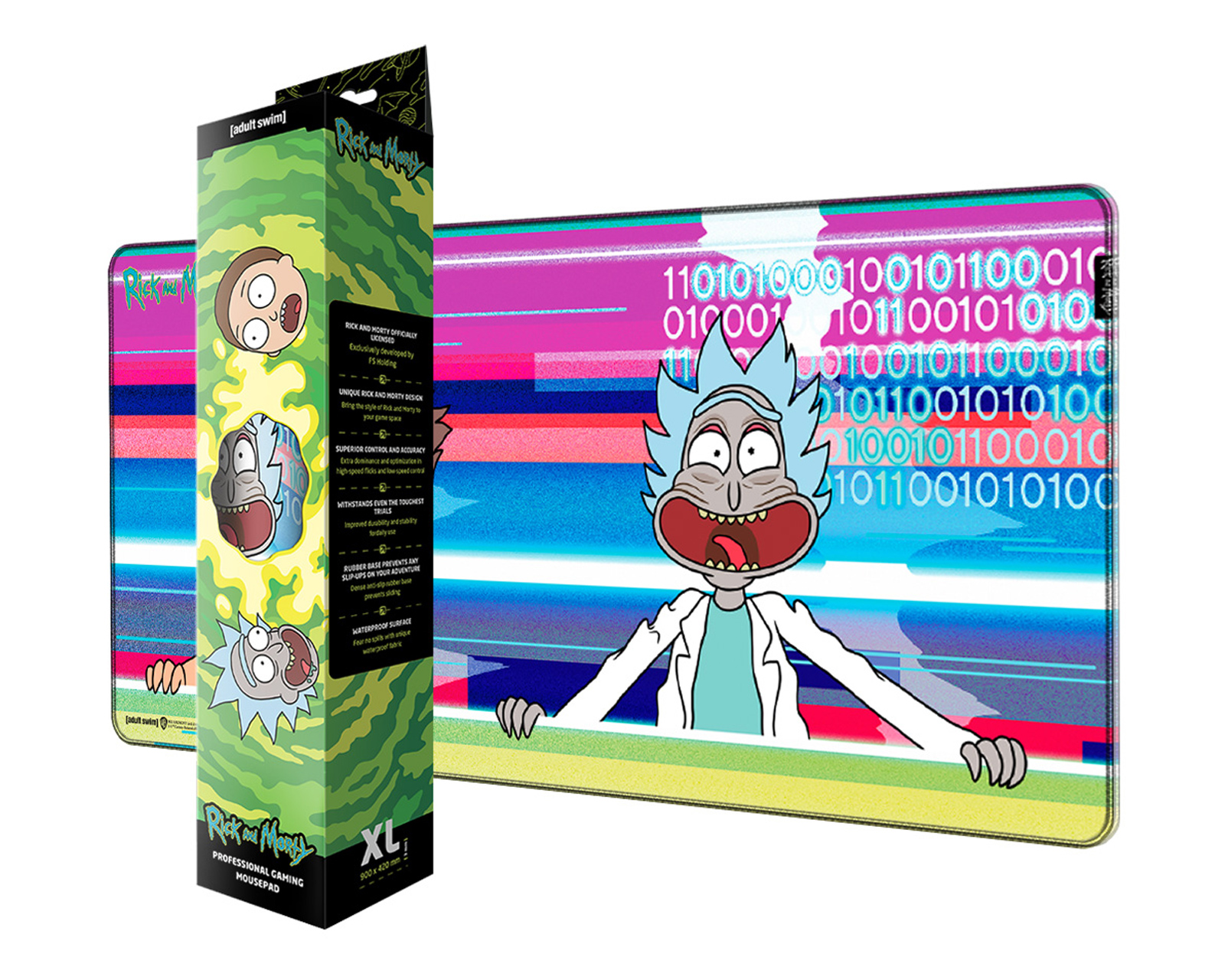 Ricky and Morty - Glitched is a gaming mouse pad designed to provide an optimal surface for mouse movements and is particularly suitable for gamers seeking precision, comfort, and are fans of Rick and Morty. The mouse pad's dimensions are 900 mm in width and 420 mm in depth, with a thickness of 4 mm. Made from fabric, it offers a soft and smooth surface for accurate movements.The choice of materials and construction with stitched edges provide durability that withstands wear over time. The print is robust and the design is made to endure long-term use without fading. This mouse pad also features a strong base to prevent slipping on the desk during active gaming, which enhances the stability of the device being used.
