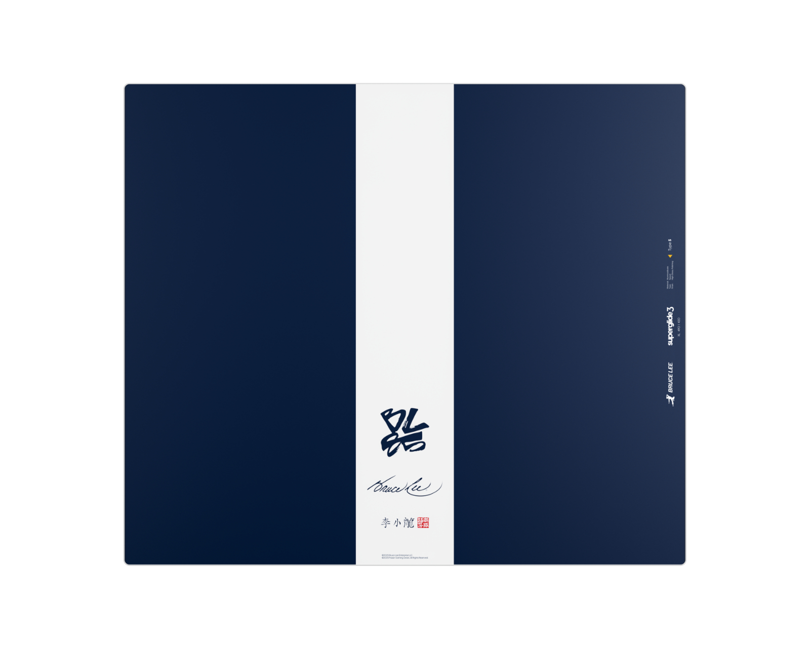 v3 x Bruce Lee 85th Edition XL is a glass mouse pad in a limited edition from Superglide, designed for high performance and precision. It features a surface made of aluminosilicate glass that is chemically strengthened for increased durability and offers fast gliding as well as precise control. The dimensions are 490 mm x 420 mm with a thickness of 1.5 mm, making it a perfect fit for gamers and users who value efficiency and comfort.The aluminosilicate glass material is known for its resistance to scratches and pressure, making it a reliable base for long-term use. The surface of the mouse pad is refined to provide higher speed and a smoother feel during use. The rounded edges contribute to smoother movements and reduce the risk of the mouse getting stuck, improving ergonomics. Additionally, the high-density silicone design provides a strong grip on the surface, which further enhances stability and reduces the risk of slipping.