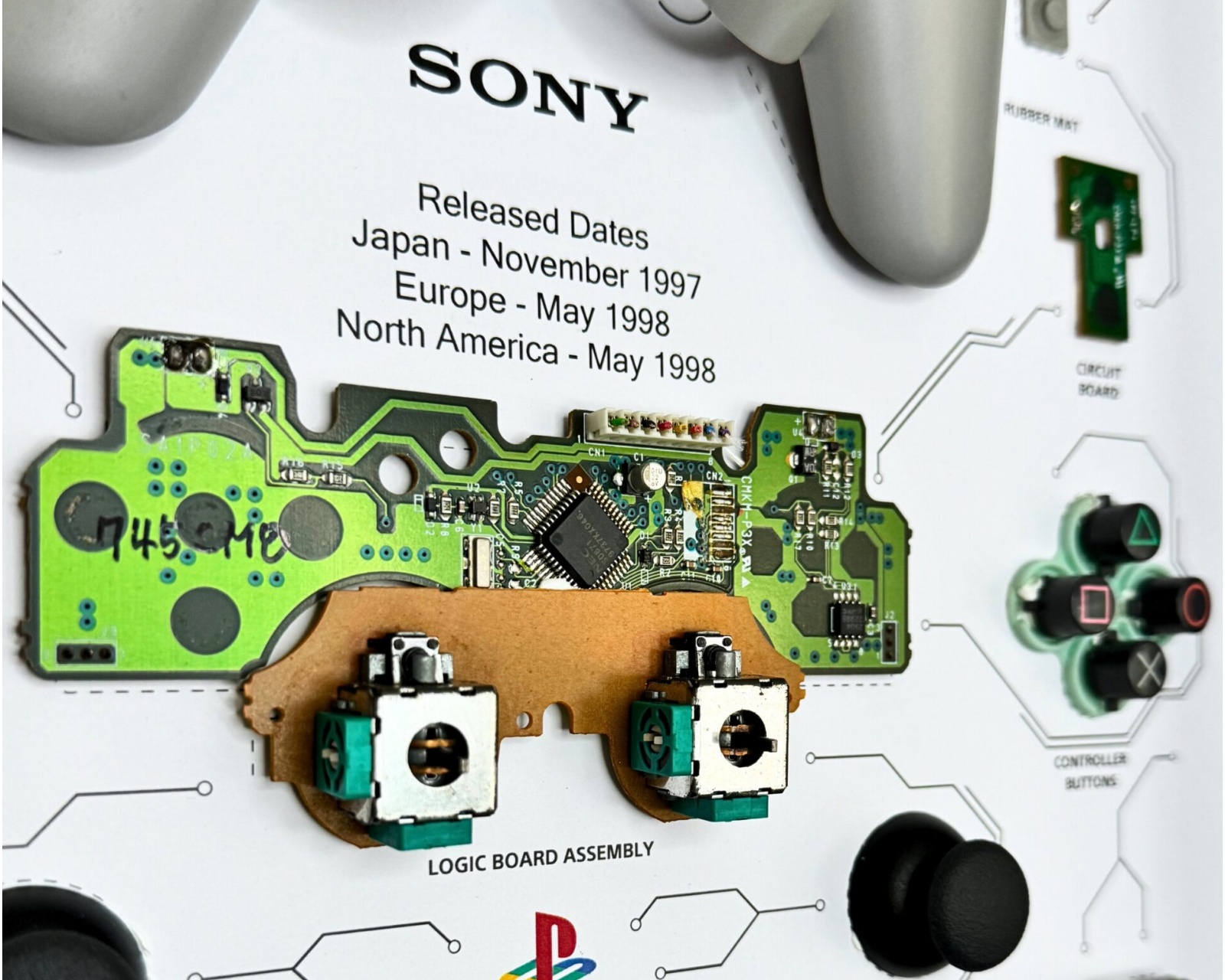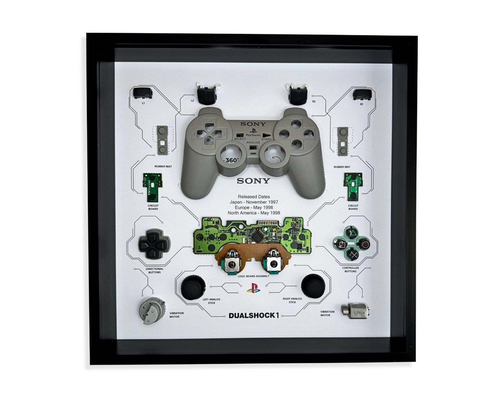 Retro Art Sony PS1 Controller Display is a product from GRC, aimed at retro gaming enthusiasts. This display is designed to elegantly showcase a Sony PS1 controller, providing a nostalgic feel for gamers and collectors. The functional design aims to preserve the controller's appearance and functionality while offering sleek and secure storage. The display's construction is made of high-quality material that ensures durability and long lifespan.The assembly of the display is simple and can be done without tools, making it convenient for the user. It also secures the controller's position so that it does not risk falling or getting damaged. This display is optimal for those who wish to showcase their collection of retro gaming memories in a room or gaming corner.
