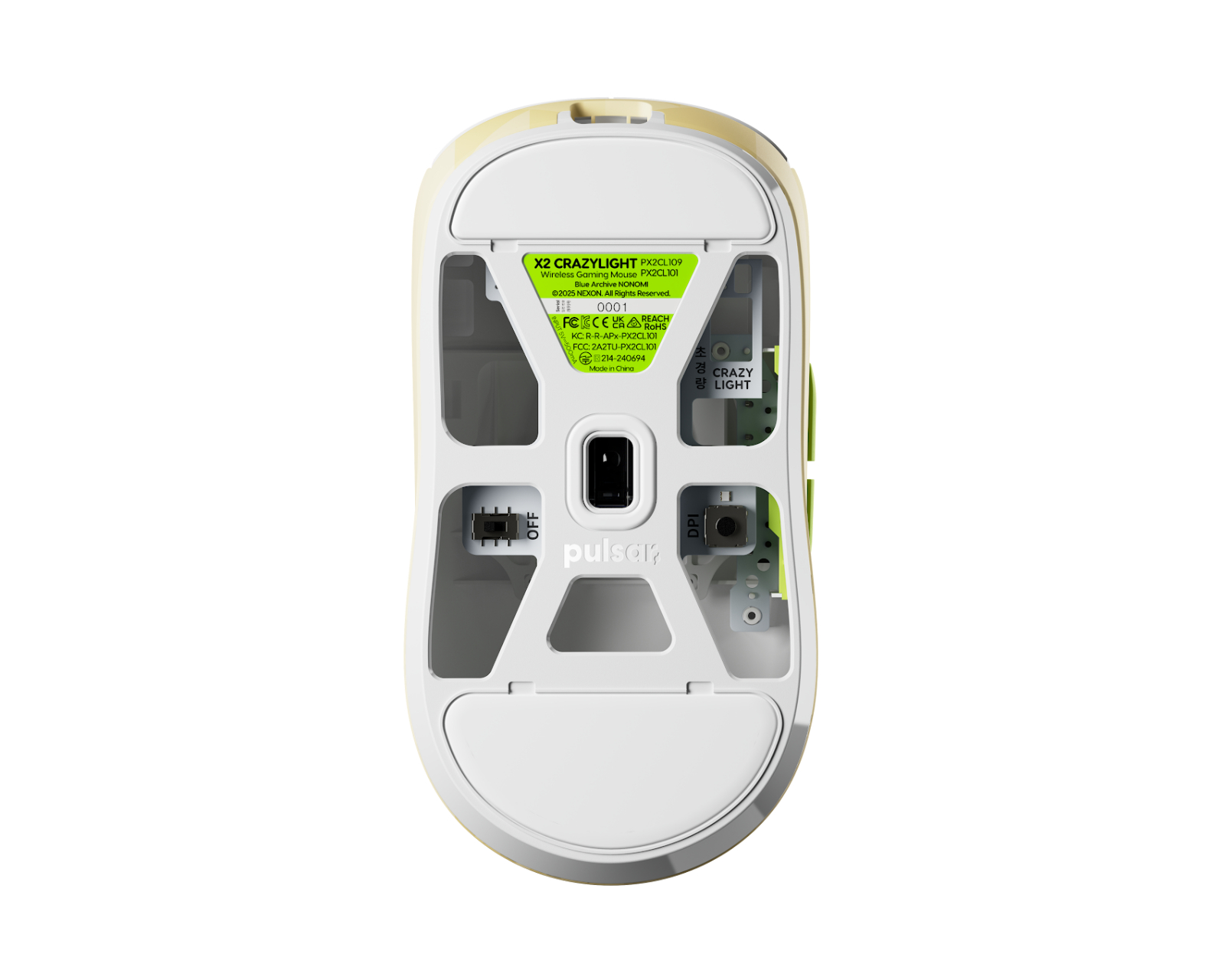 X2 CrazyLight is a wireless gaming mouse from Pulsar that weighs an exceptional 39 grams. This ultra-light mouse is designed to minimize wrist fatigue during long gaming sessions while offering a polling rate of up to 8K for fast and precise movements. Equipped with an advanced XS-1 sensor, it supports up to 32,000 DPI, 750 IPS tracking speed, and 50g acceleration, providing gamers with high precision and control.The mouse body is symmetrical and features a low-profile shape with a wide waist that suits both claw and fingertip grips. It is built with durable optical switches that have a lifespan of 100 million clicks, ensuring long-lasting performance under intense use. CrazyLight combines extreme lightness with high functionality, offering a unique gaming experience tailored for every gamer.