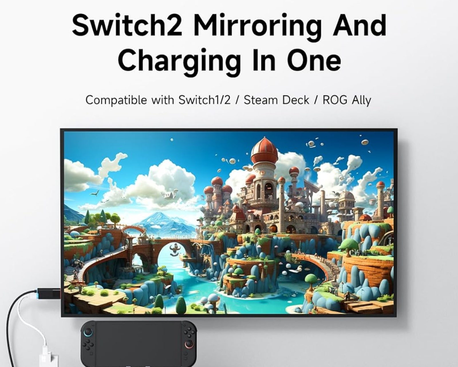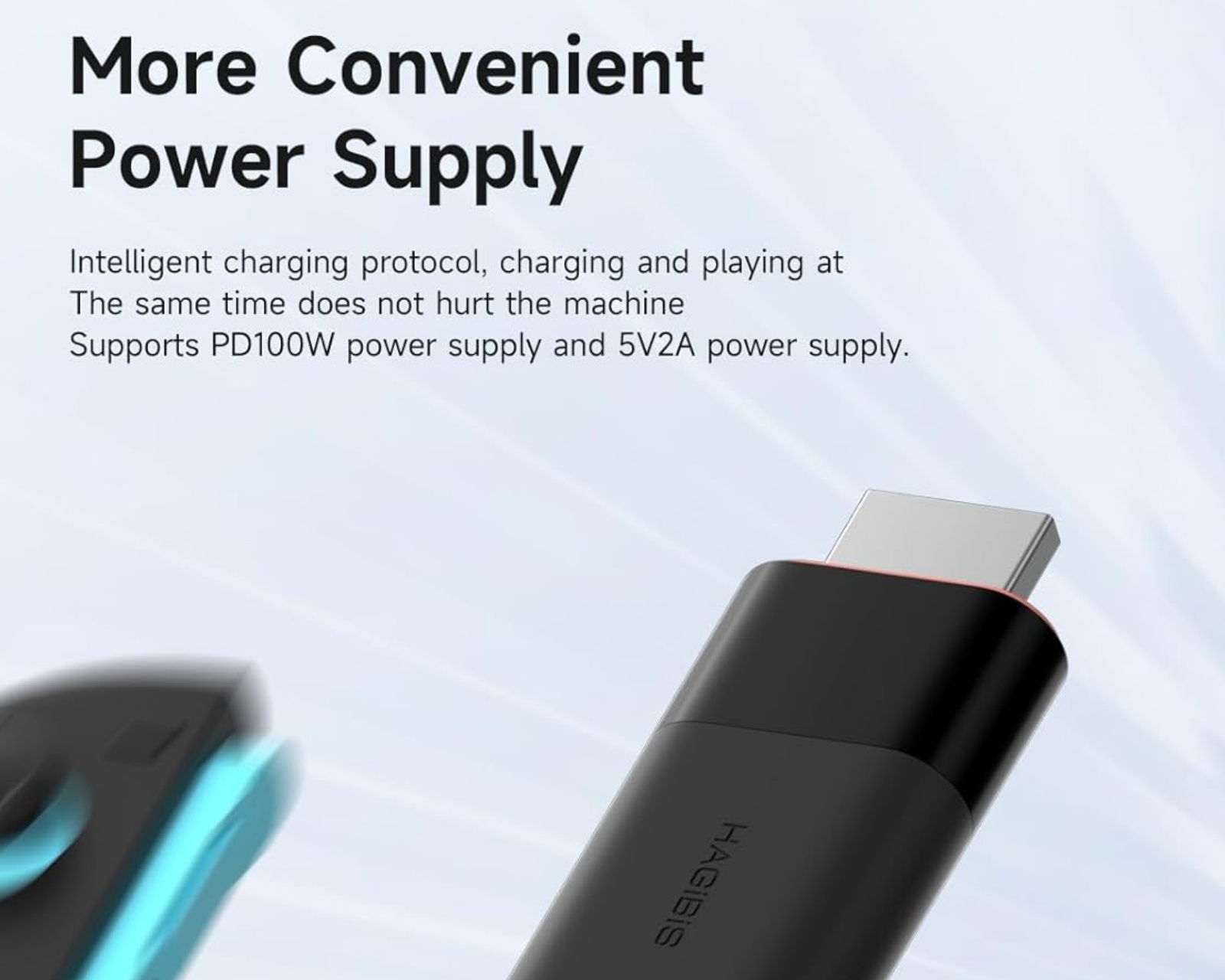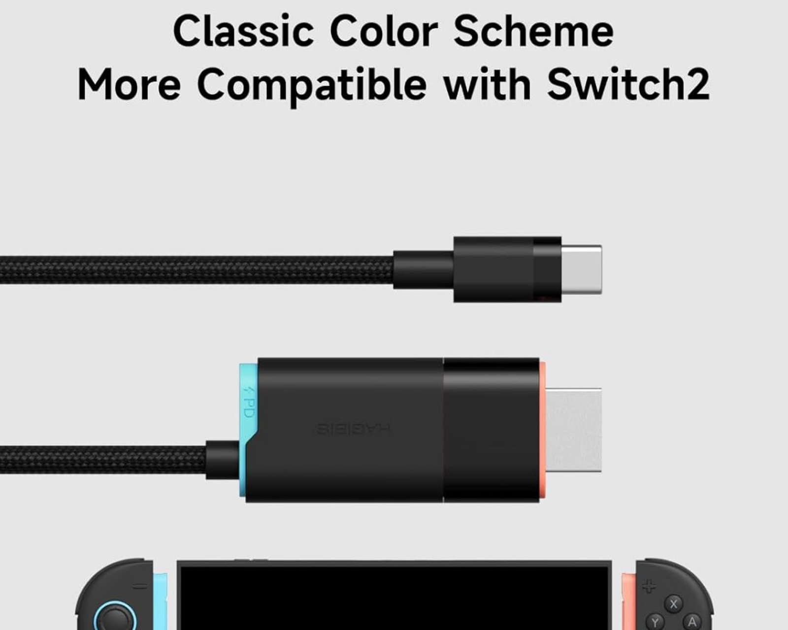 Hagibis Switch2 Dock is a USB-C to HDMI cable adapter for Nintendo Switch 1/2 and Switch OLED that enables gaming in TV mode. The dock has a compact design, weighs only 72 grams, and is easy to carry, making it ideal for gamers on the go. With support for video resolutions up to 4K (3840 x 2160 P/60 Hz) and compatibility with various HDTVs, monitors, and projectors, the dock is a practical accessory for both gaming consoles and portable devices.The case is made of durable material and offers easy connectivity via HDMI and USB type C. It also supports PD fast charging up to 100 W, allowing for charging of the device while gaming. This dock provides high dynamics in its image details by supporting HDR, enhancing image quality in both bright and dark scenarios. The device is also compatible with laptops, tablets, and other Thunderbolt 4/3 devices, providing increased versatility.