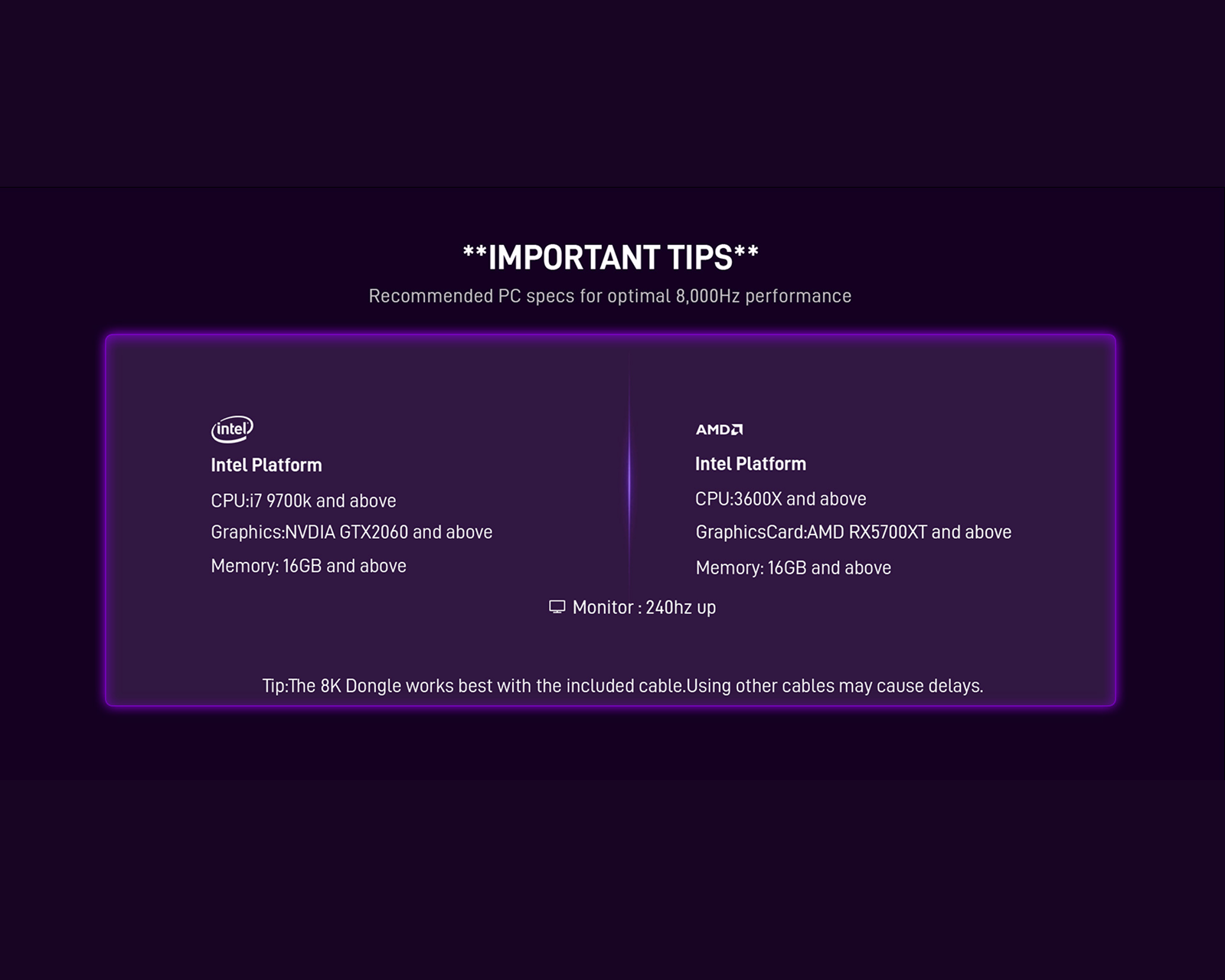8K II Dongle from LAMZU enables a refresh rate of up to 8000 Hz, allowing for a fast and responsive experience. It offers a significant increase in data transmission, which is particularly beneficial for games with high refresh rates. The dongle is designed to provide an edge in FPS and MOBA games by delivering microsecond-level response times.The device allows users to easily connect with a browser-driven, one-button configuration. By using the included cable, it maximizes performance and provides a polling rate of 8000 Hz.