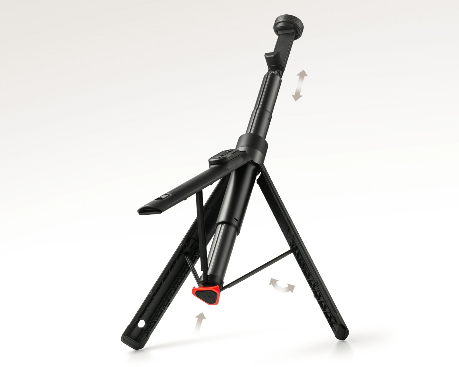 Zoom Floor Selfie Stick Tripod 62" is a selfie stick and tripod from Xiaomi. It offers a 62-inch extension feature and is designed to facilitate wide-angle photography. The product's main features include a telescopic aluminum alloy that extends up to 62 inches and a stable design, making it suitable for users looking for versatility in their photography.The tripod has a 10-section adjustable pole made of aluminum alloy with a non-slip base, ensuring stability during photography. The extended legs improve weight distribution, minimizing shakes. It is equipped with a rotating phone clamp that allows quick switching between landscape and portrait mode. A wireless remote control is included, allowing for remote picture-taking up to 393 inches. The device also has a hidden accessory mount for additional devices, such as light panels.