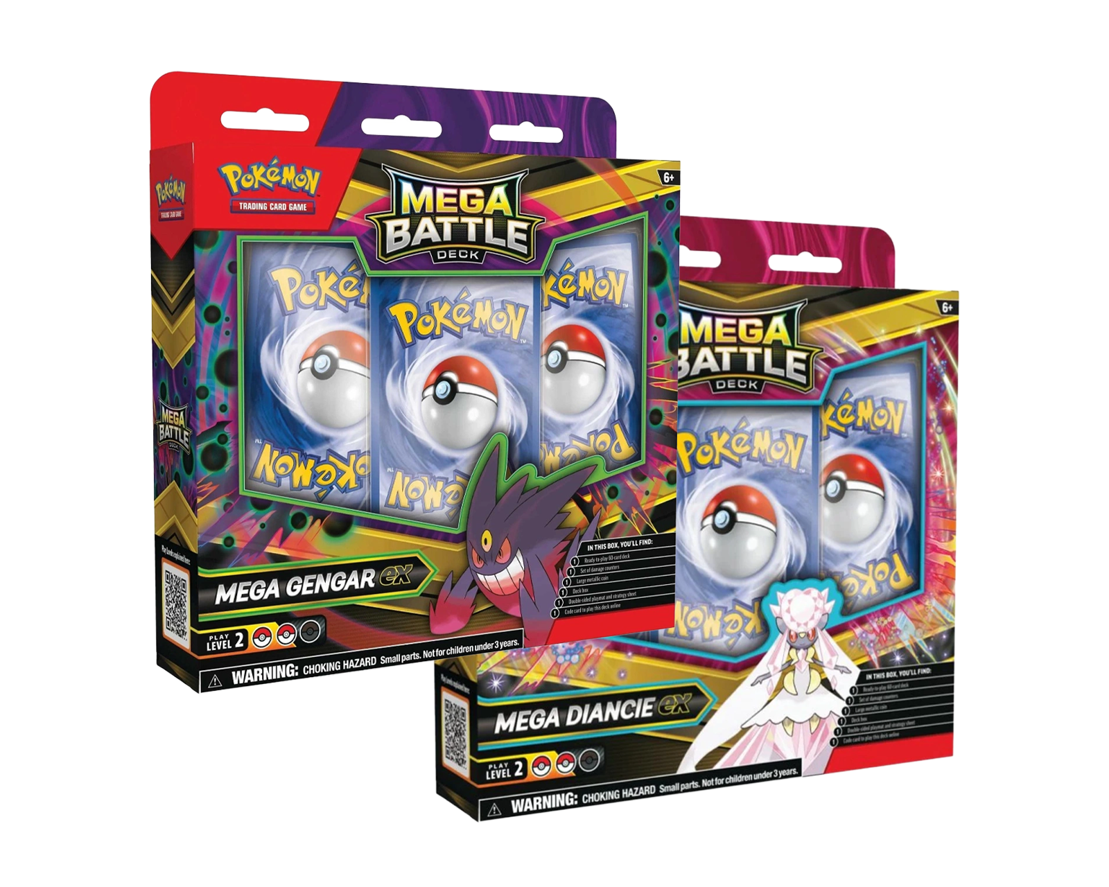 Battle Deck Ex Gengar/Diancie from Pokemon contains 60 collectible cards, a damage counter, a metallic coin, a card box, and a double-sided playmat.A code card allows you to play with this deck online, adding a digital dimension to the game.