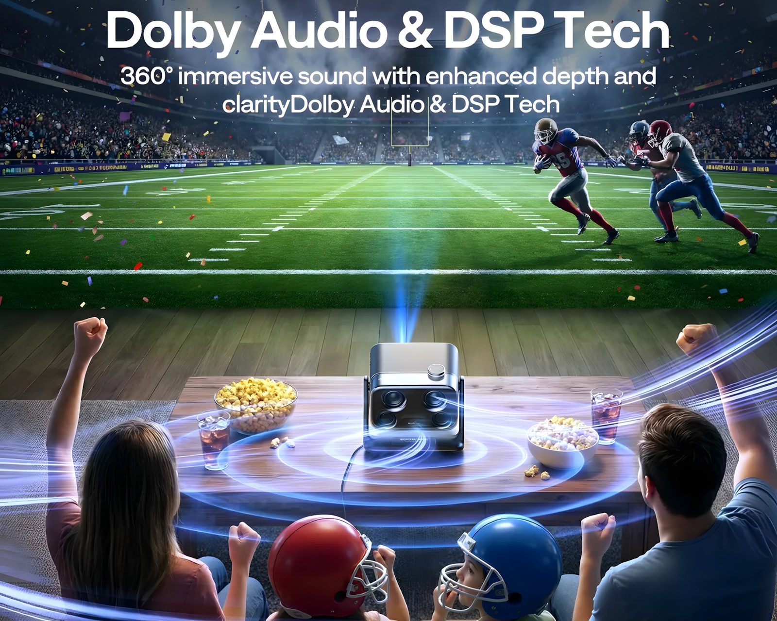 A compact multimedia projector from Aurzen that enables smooth display of content on a large screen, whether at home or outdoors. The device runs on Google TV, providing direct access to thousands of streaming services without the need for external devices. With a brightness of 500 ANSI lumens and HDR10 technology, contrast and image details are improved.The projector is equipped with ToF technology (Time of Flight) which allows for automatic focusing and real-time image adjustment, meaning installation is quick and easy. 20W built-in speakers with Dolby Audio support create a rich audio experience, and the extensive wireless connectivity provides great opportunities for streaming.