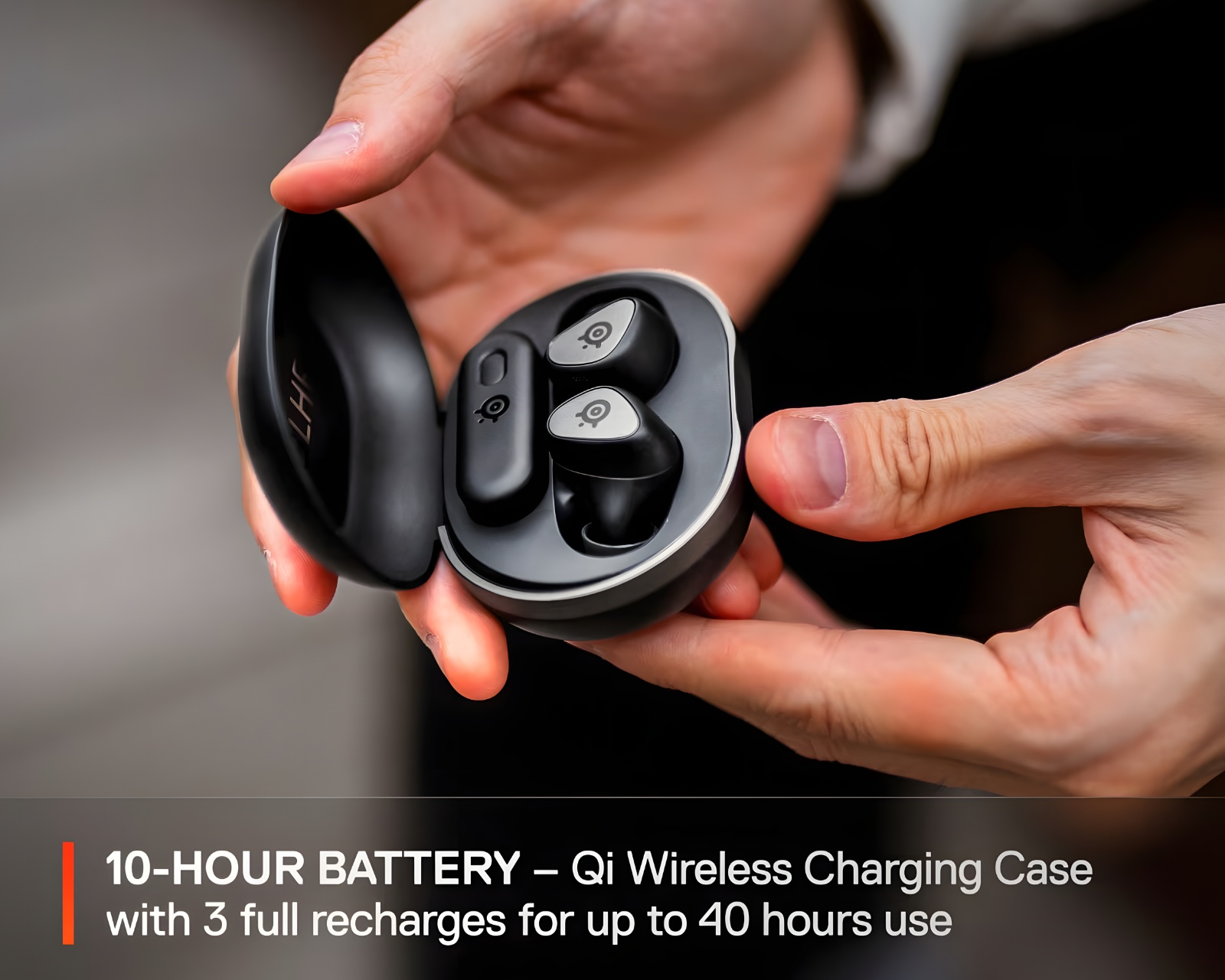 GameBuds have an impressive battery life of 10 hours, allowing you to enjoy your games without interruptions. Additionally, the included case offers an extra battery capacity of 30 hours, meaning you can charge your headphones multiple times before needing to plug them in again. This makes GameBuds the perfect choice for players who are on the go or engage in long sessions.