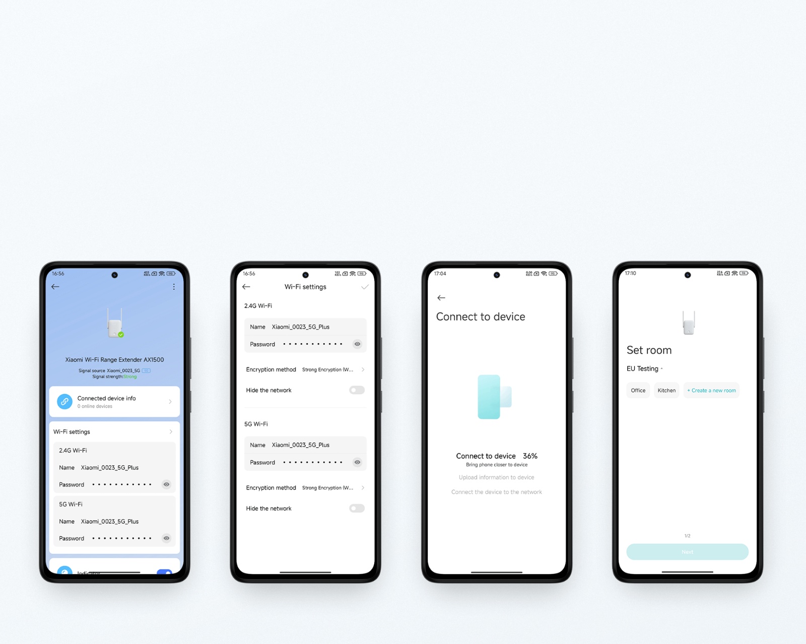 WiFi Range Extender AX1500 is a Wi-Fi 6 range extender from Xiaomi that offers high speed and extensive coverage to improve your home network. It supports a theoretical wireless speed of up to 1501 Mbps and is compatible with EasyMesh technology, providing seamless roaming throughout the home. The product is intended for users experiencing issues with weak Wi-Fi signals and who desire a stable internet connection in every room.The device features a Gigabit Ethernet port for faster wired speeds and a smart signal indicator to help optimize the installation location. AX1500 is designed with dual-polarized omnidirectional antennas to increase the range of the signal and has Beamforming technology for targeted signal transmission. This means that as you move between rooms, your connection will remain strong without needing to adjust anything.