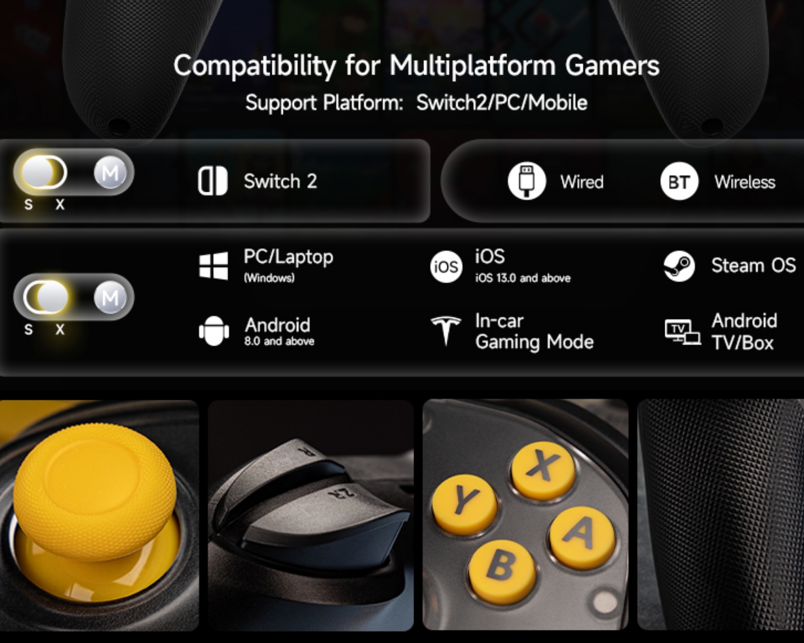 S10 Lite is a game controller from Nintendo designed to provide a seamless gaming experience with Switch 2. It is equipped with Hall Effect sensors that eliminate stick drift and has an upgraded Ultra-Glide™ structure for smoother movements. With a robust connection via Bluetooth and a battery capacity of 1000 mAh, players can enjoy long gaming sessions.The product features well-thought-out build quality, where the anti-slip material and ergonomically shaped curve make it comfortable to hold. The controller has an advanced 9-axis gyroscope that corrects spatial drift in real-time, providing high precision in movements. Connection methods include both wireless Bluetooth and wired connection via Type C. This makes it compatible with multiple platforms, including Windows and mobile operating systems.