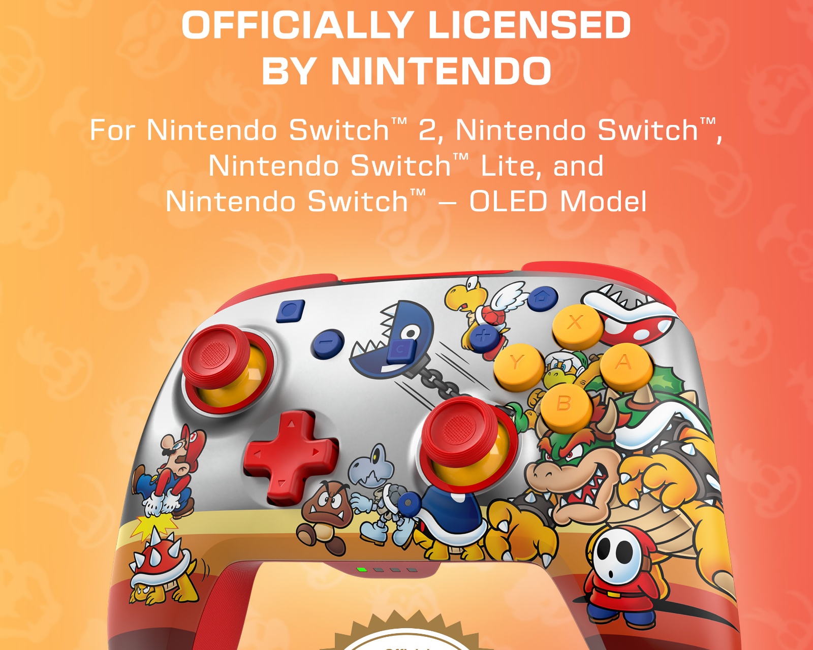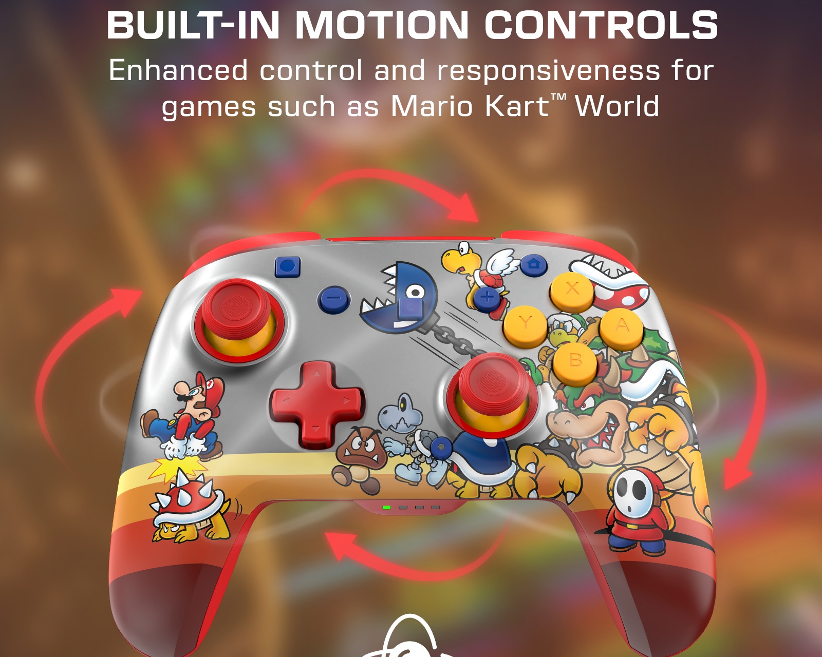 Rematch™ Koopa Troop is a wireless game controller from Turtle Beach, designed for Nintendo Switch™ 2, also compatible with Nintendo Switch™, Switch™ Lite, and OLED model. The controller features an impressive wireless range of up to 30 feet and offers RGB lighting with four dynamic modes.The controller is built with premium TMR (Tunneling Magnetoresistance) thumbsticks that enhance responsiveness and precision. The integrated motion controls allow players to enjoy a more interactive gaming experience. With a built-in rechargeable battery, you get up to 40 hours of gameplay without RGB lights or 12 hours with the lights on, providing long-lasting use.