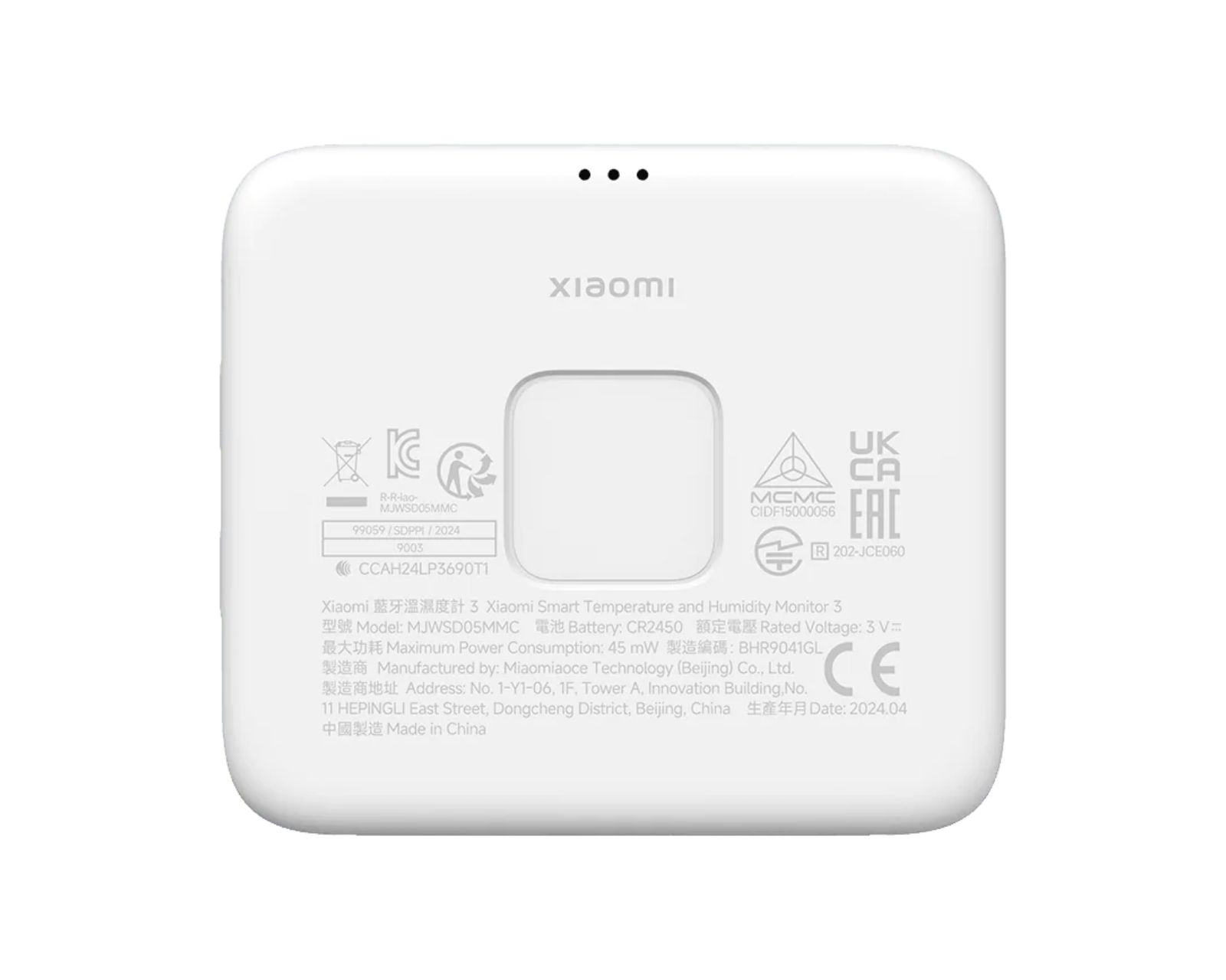 Xiaomi Smart Temperature and Humidity Monitor 3 is a digital device that measures both temperature and humidity. It features a large LCD screen and a high-precision sensor that can detect changes in temperature with an accuracy of 0.1 °C and humidity with an accuracy of 1 % RH. The product is designed to monitor the indoor climate, thereby contributing to a healthier environment for the user.The monitor is equipped with an industrial grade sensor from the Swiss company Sensirion and has a large screen measuring 62.6 x 53.2 mm for easy reading. The device updates the measurements every six seconds and displays temperature, humidity, date, time, and comfort level all on the same screen. It also has a button to switch between different display modes. The device is designed to use a CR2450 coin cell battery with low energy consumption, providing a standby time of up to 1.5 years.