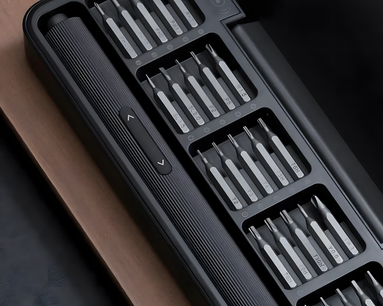 25-in-1 Electric Screwdriver is a compact and powerful device from HOTO, designed to handle precision screwing in various projects. The set includes 25 S2 steel bits and offers both auto and manual modes, providing users with flexibility in their work. It also features an ergonomic design with a non-slip aluminum cover and a one-button control for easy use.The device contains a wide range of 25 S2 steel bits including Phillips, Torx, Slotted, Hex, Pozidriv, Square, and security bits, making it suitable for different types of screws. The built-in magnetizer improves grip on micro screws and prevents frustration when handling small parts. With a USB-C rechargeable battery and a two-color battery health indicator, it ensures that the device's power is always available. The anodized bits and the non-slip aluminum alloy cover also provide good build quality.