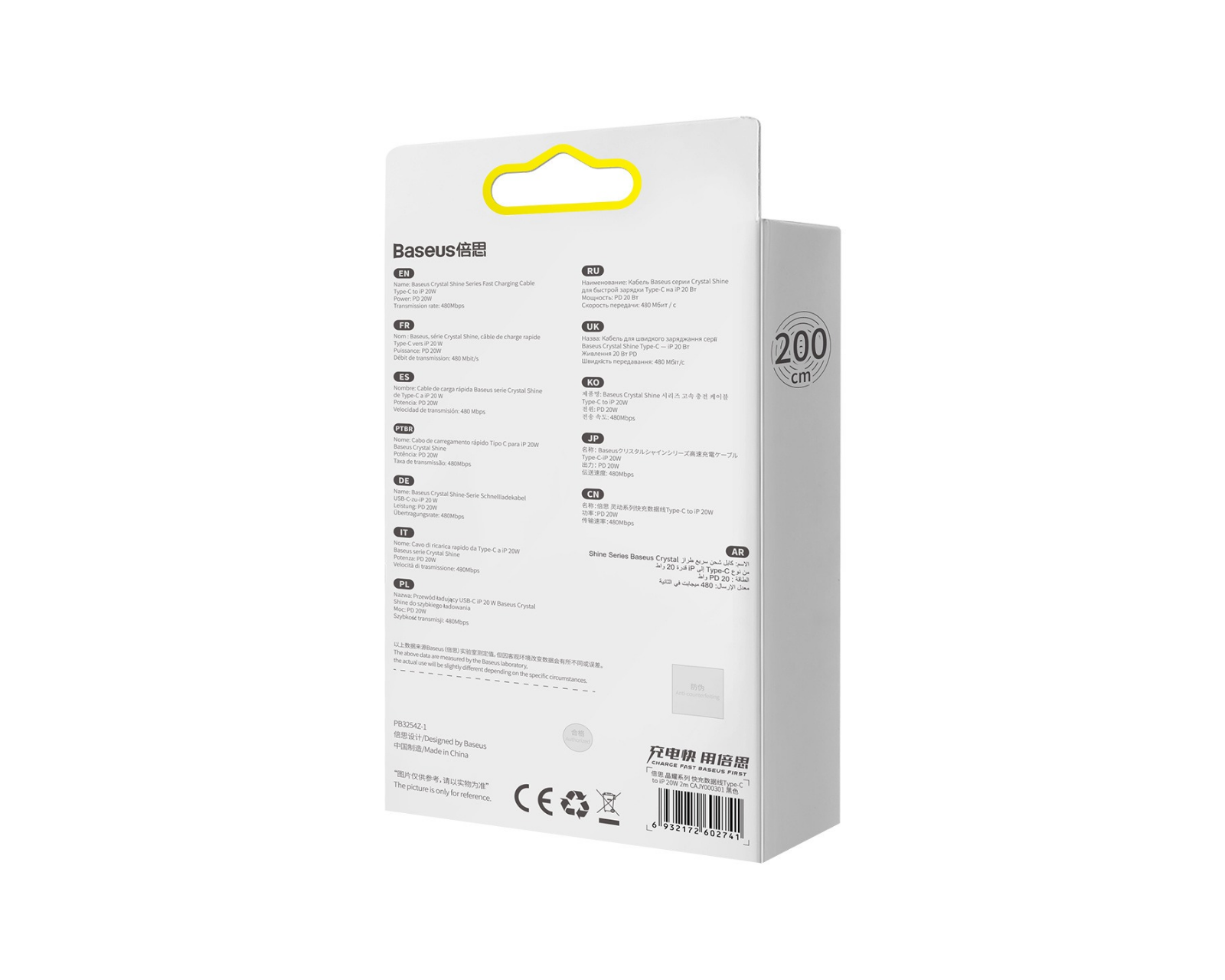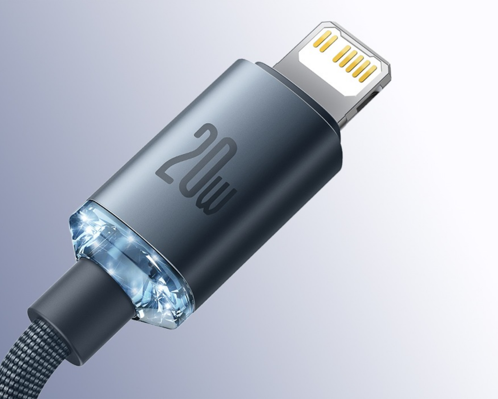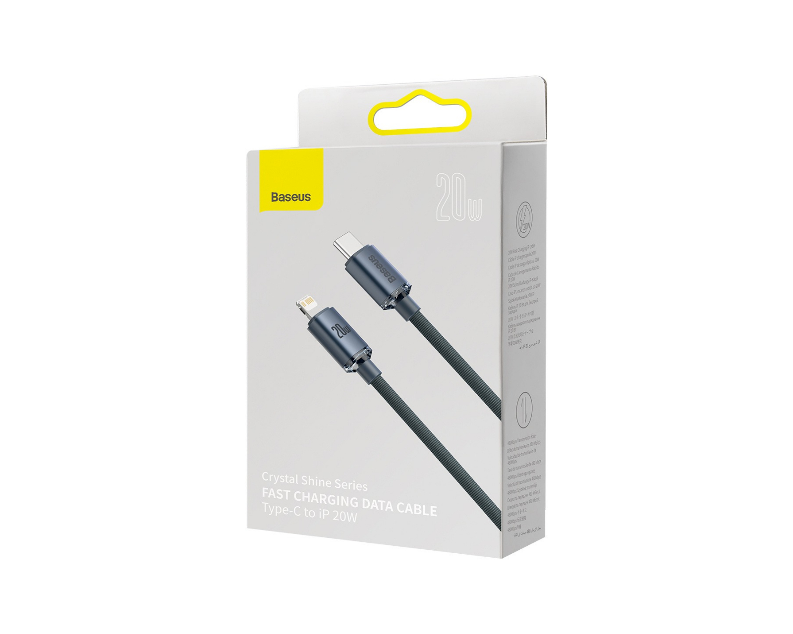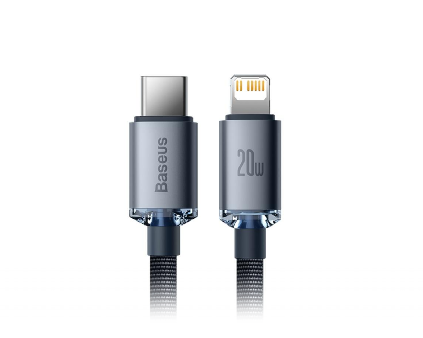 Crystal Shine USB-C to Lightning cable from Baseus offers functionality and durability in a sleek package. This cable is designed for fast charging with a power of 20W and simultaneously enables data transfer at a speed of 480 Mbps. It is also constructed to withstand overheating thanks to intelligent temperature control, making it both safe and efficient.The cable is built using galvanized reinforcements and a new core technology that reduces electrical resistance, providing faster charging. Additionally, it is made of a durable fabric that prevents tangling and is strengthened with improved SR protection technology, allowing it to handle over 10,000 connections. The elegant aluminum material and glossy finish provide a modern look that makes the cable more than just an accessory.