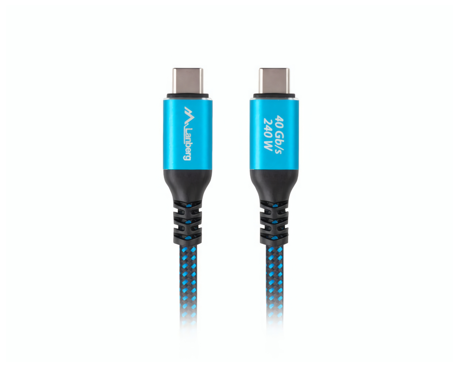 USB-C 4.0 to USB-C Cable 240W 8K 60HZ is a cable from Lanberg that offers high transfer capacity and powerful charging. It is designed for use with devices that require fast data transfer and high resolution, making it suitable for both home use and professional environments. The cable has a length of 0.5 meters and can transfer up to 240 watts of power.This cable follows USB4 standards and enables transfer speeds of up to 40 Gbps. It supports resolutions up to 8K at 60 Hz, which is ideal for use with high-resolution displays. The cable's double shielding construction minimizes signal loss and ensures stable transmission. It is made of copper for optimal conductivity and has a robust cotton braiding and aluminum connector that contribute to its durability and resistance to damage.