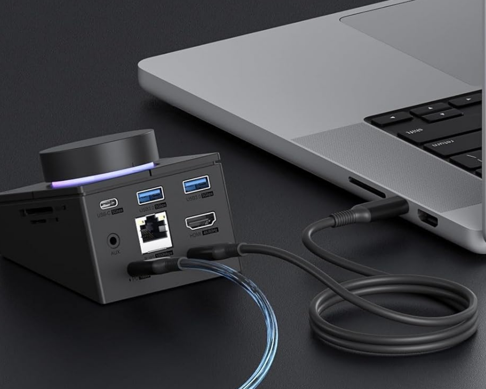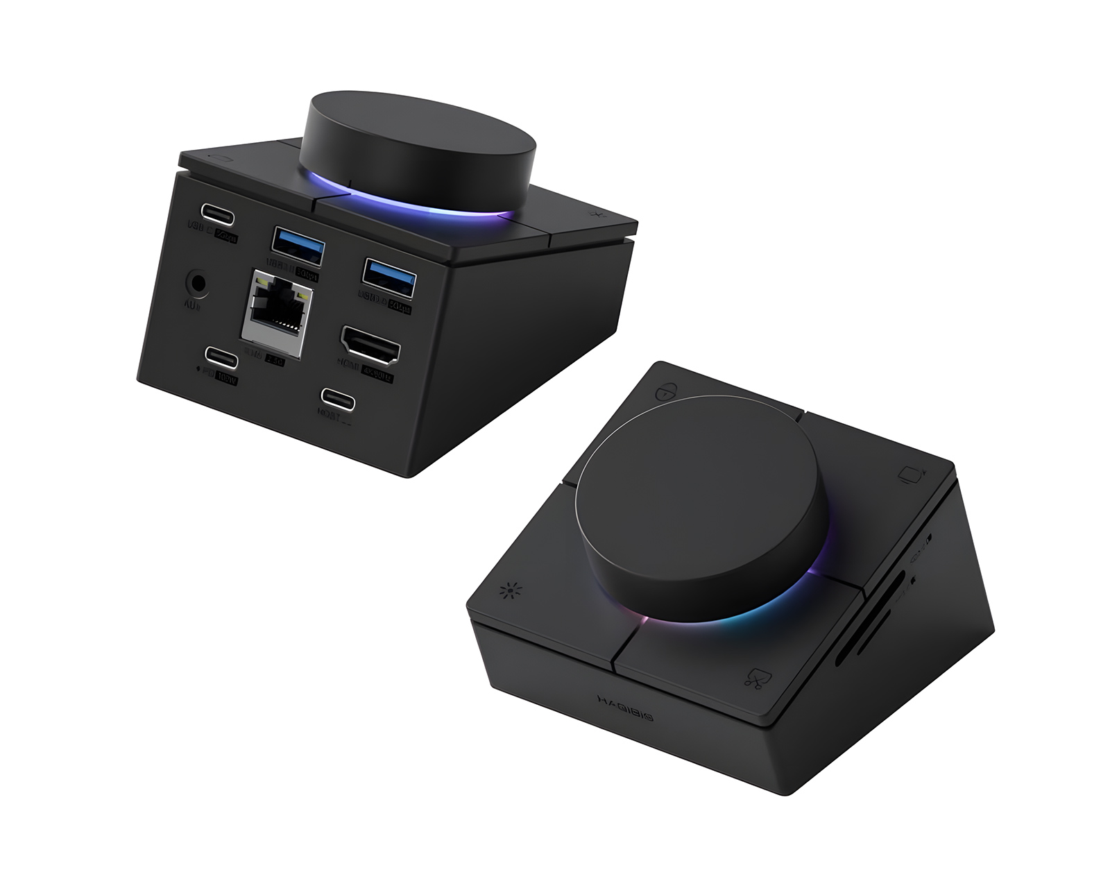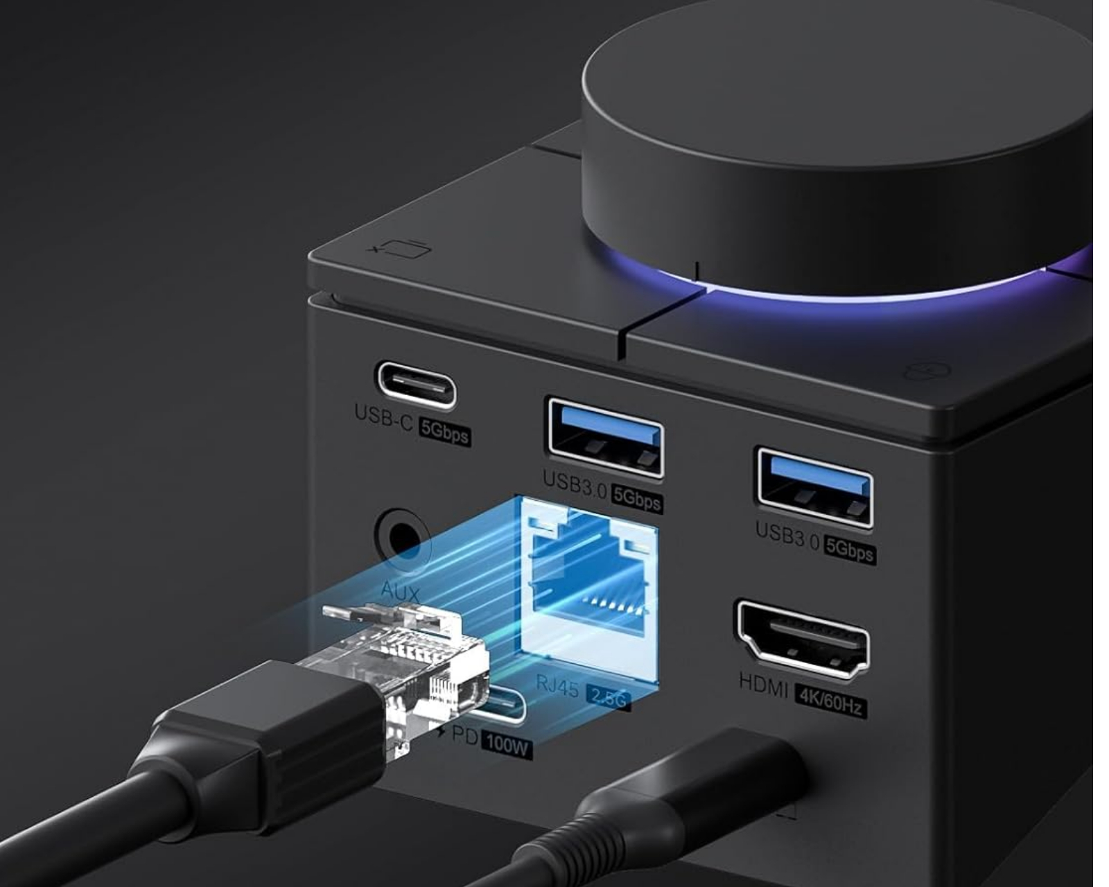 Hagibis UC-1102A is a USB C hub that integrates multiple functions into one device. This docking station offers 9-in-1 capabilities along with RGB lighting, a volume button, and shortcut buttons for quick access. It is designed for use with USB-C devices, including MacBook, iPad Pro, and laptops. This hub features an HDMI port that supports resolutions up to 4K@60Hz, enabling connection to HDTVs and monitors for high-quality video needs.With a 100W power delivery (87W for safety), connected devices can also be charged efficiently. The hub also includes five ports with speeds up to 5Gbps, which is compatible with USB A 2.0 and lower. The RJ45 port provides a fast and stable network connection up to 2.5Gbps.