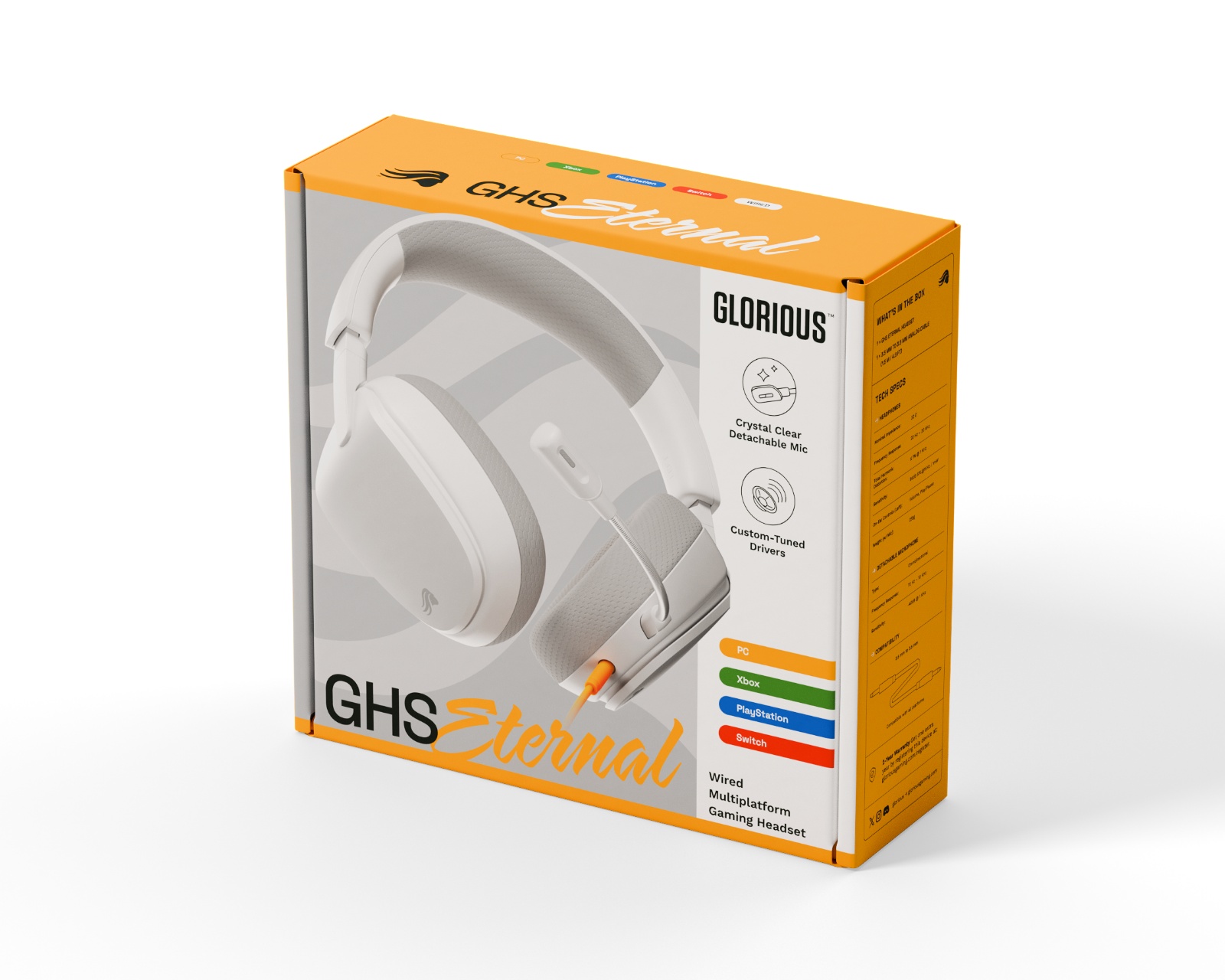A wired headset from Glorious that offers high-quality audio performance and comfort during long gaming sessions. With custom-built high-resolution drivers, the headset provides clear and balanced sound, making it easier to hear details like footsteps and other important sounds. It also features a detachable microphone that ensures clear communication with teammates.The build quality is one of the main strengths of the GHS Eternal. The headset is constructed with reinforced materials to withstand intense gaming sessions and is lightweight to promote comfort during extended use. With memory foam ear cushions and an adjustable headband, users can easily find a comfortable fit. The connection via 3.5 mm jack makes it compatible with a variety of devices, including PC, PlayStation, Xbox, and Switch.