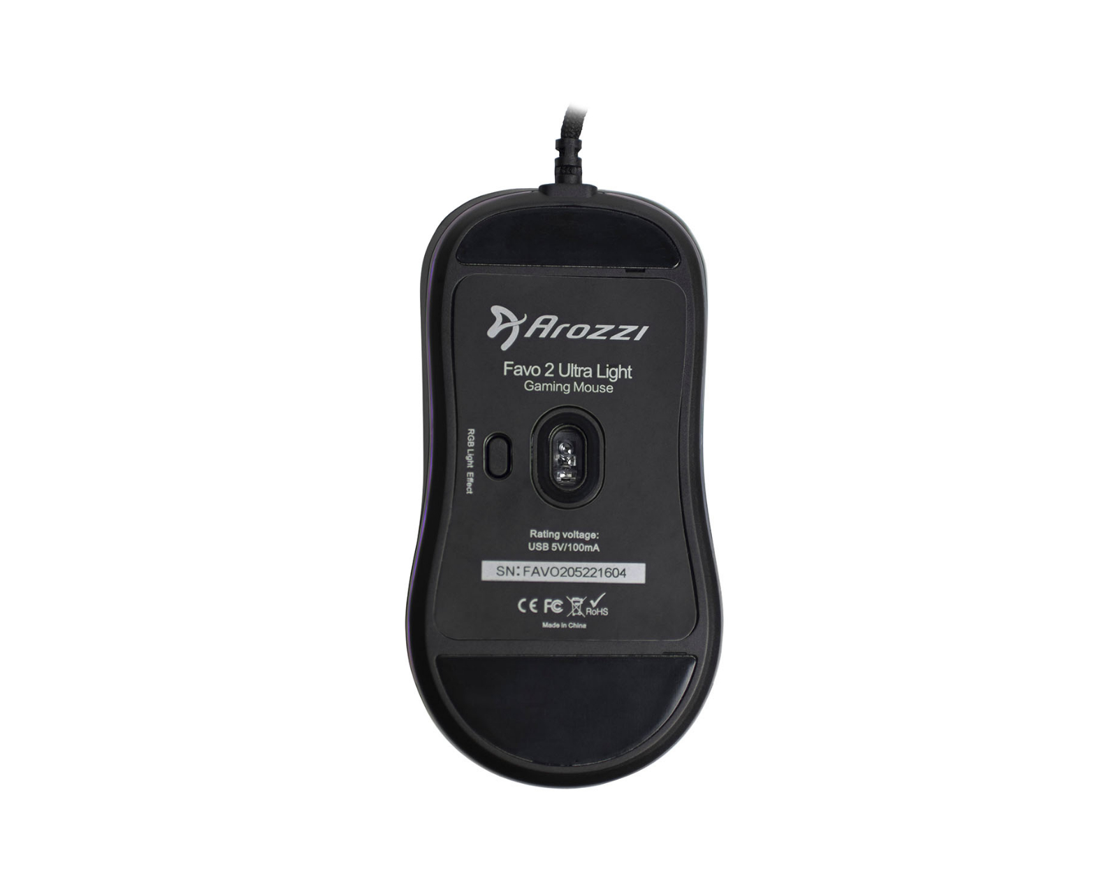 Arozzi Favo 2 is a gaming mouse that combines low weight with advanced technology. Equipped with a Pixart 3389 sensor, this mouse offers precise tracking and an adjustable DPI range from 200 to 16000. The mouse is built with Omron 20M switches and is designed for players' needs for speed and precision.Favo 2 is constructed with a focus on user-friendliness and ergonomics. Weighing only 74 grams, this ultra-light gaming mouse is one of the lightest on the market. The mouse features six buttons that can be customized according to the player's preferences and includes RGB lighting, which can be controlled directly via the mouse or through Arozzi's software. The new shell has a modified shape and size to refine the user experience.
