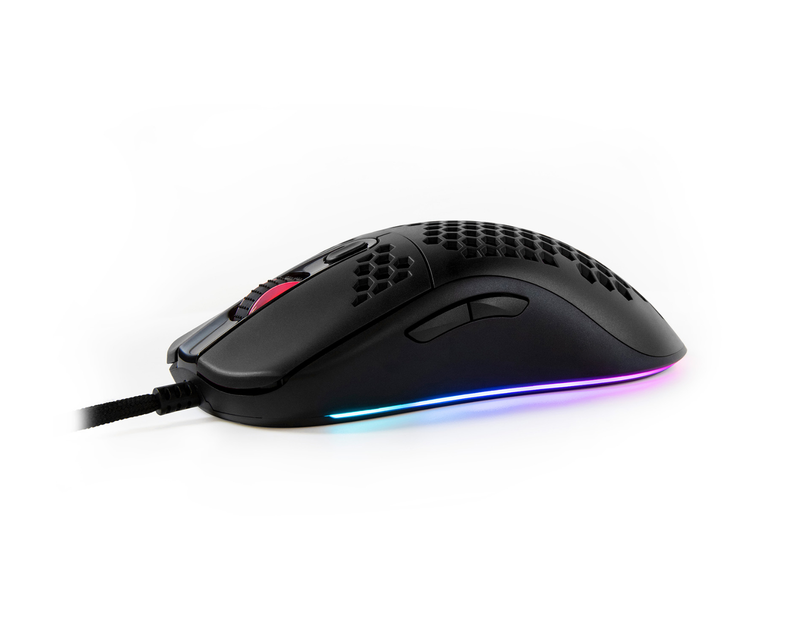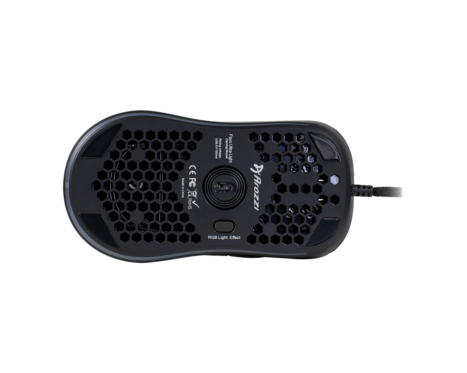 Favo Ultra Light Gaming Mouse is a gaming mouse from Arozzi that combines low weight and high performance. With a DPI of up to 16000 and a Pixart 3389 sensor, the mouse provides precision and speed that are crucial in intense gaming situations. It is equipped with six buttons and offers a USB connection for stable and direct response.The mouse’s construction is carefully designed to minimize weight, making it weigh only 74 grams. It also features a scroll wheel that facilitates navigation and quick access to different functions. The lighting is RGB, which can be customized according to the user’s preferences. The switches are of the Omron type, known for their reliable performance and long lifespan.