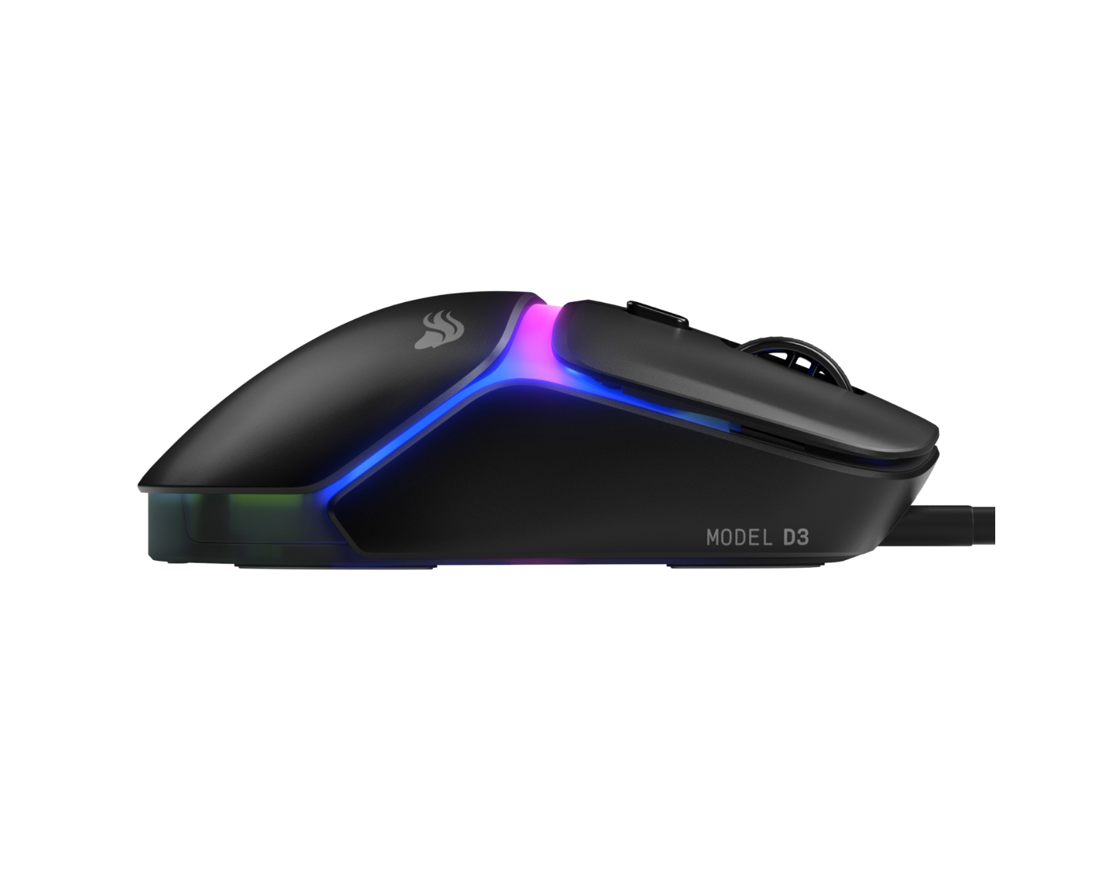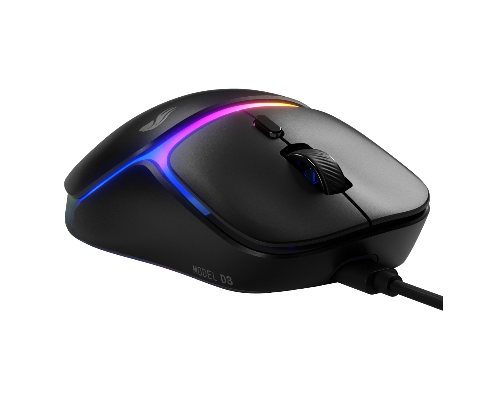Model D3 is a wired gaming mouse from Glorious that offers ultra-light precision with a weight of only 57 grams. It is designed for high comfort and control during gaming, with an ergonomic shape for right-handed users. The model is equipped with the BAMF 3.0 30K sensor, which ensures accurate tracking regardless of speed and movement.The device gets its responsiveness from optical 130 M switches that provide instant feedback and crave reliability during intense gaming sessions. The customizable RGB lighting can easily be set to match the existing gaming PC's aesthetic. The mouse's shape is thoughtfully designed to provide increased support, facilitating prolonged use. Delivery includes a 2-meter long USB-A to USB-C cable that allows for easy connection to the computer.