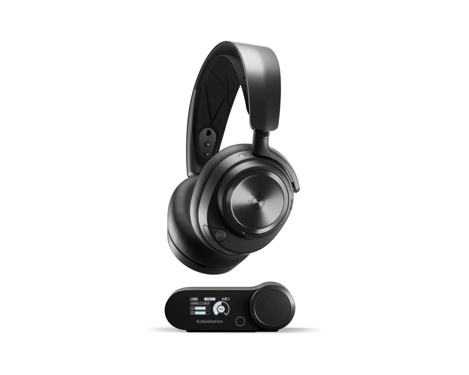 Arctis Nova Pro Wireless Gaming Headset is a headset model from SteelSeries that offers high-resolution gaming audio along with active noise cancellation. It supports dual USB connections, making it compatible with Xbox, PC, Mac, PlayStation, Switch, and more. With a design that includes neodymium magnetic elements and 360° spatial audio, the headset aims to provide gamers with an immersive sound experience.The build quality is robust and the design is ergonomic, ensuring long-lasting comfort during gaming sessions. The active noise cancellation (ANC) works in conjunction with a four-microphone system to optimize sound quality by filtering out unwanted background noise. Its hot-swappable system with two batteries enables uninterrupted usage with 22 hours of playtime per battery, and fast charging provides three hours of usage after just 15 minutes of charging.
