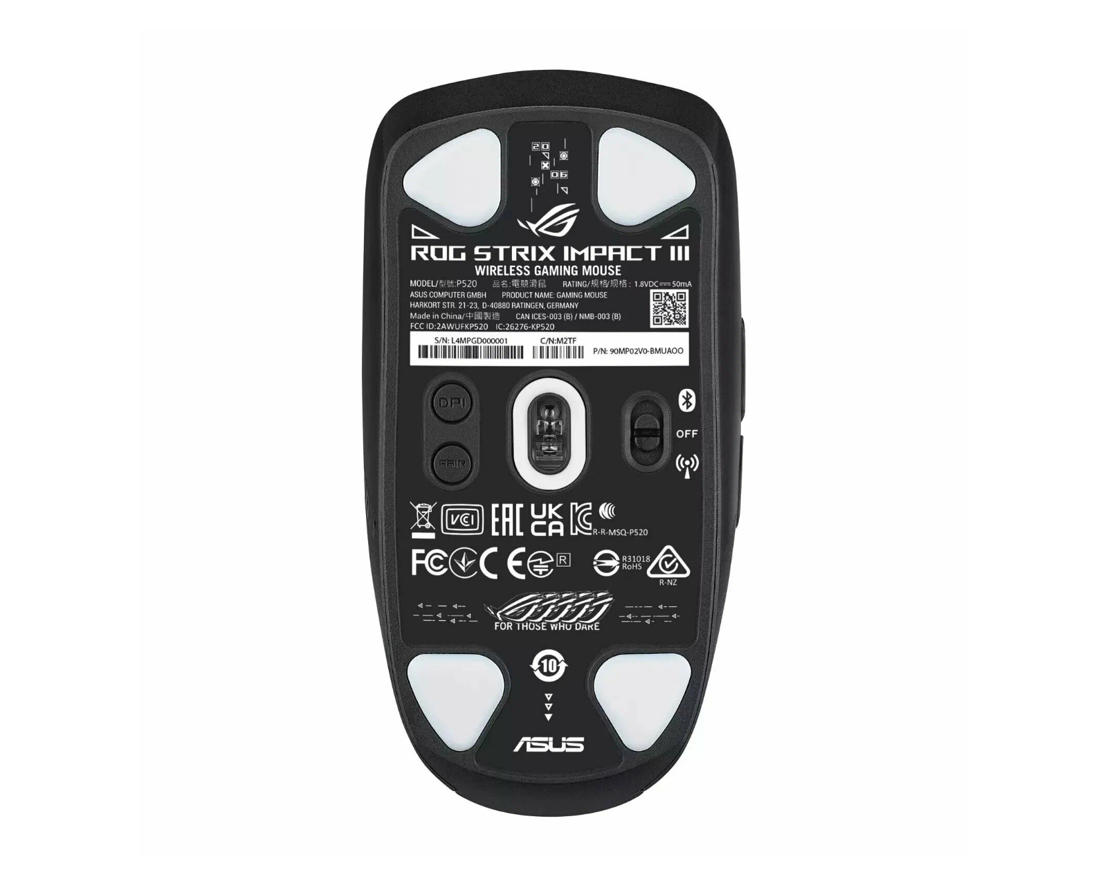 ROG Strix Impact III is a wireless gaming mouse from ASUS, designed for intense gaming sessions. It is equipped with a PixArt PAW3335 sensor that offers up to 36,000 DPI, ensuring high precision even with fast movements. With a lightweight of 72 g and customizable RGB lighting, the user experience is enhanced.The build quality of ROG Strix Impact III combines lightweight yet robust plastic, contributing to a comfortable and durable feel during long gaming sessions. The mouse's wireless functionality provides users with freedom of movement while the 1000 Hz polling rate ensures quick response. The ergonomic design is tailored for both palm and fingertip grips, making it versatile for different play styles. With five programmable buttons, users can easily customize their gaming experience for specific game needs.