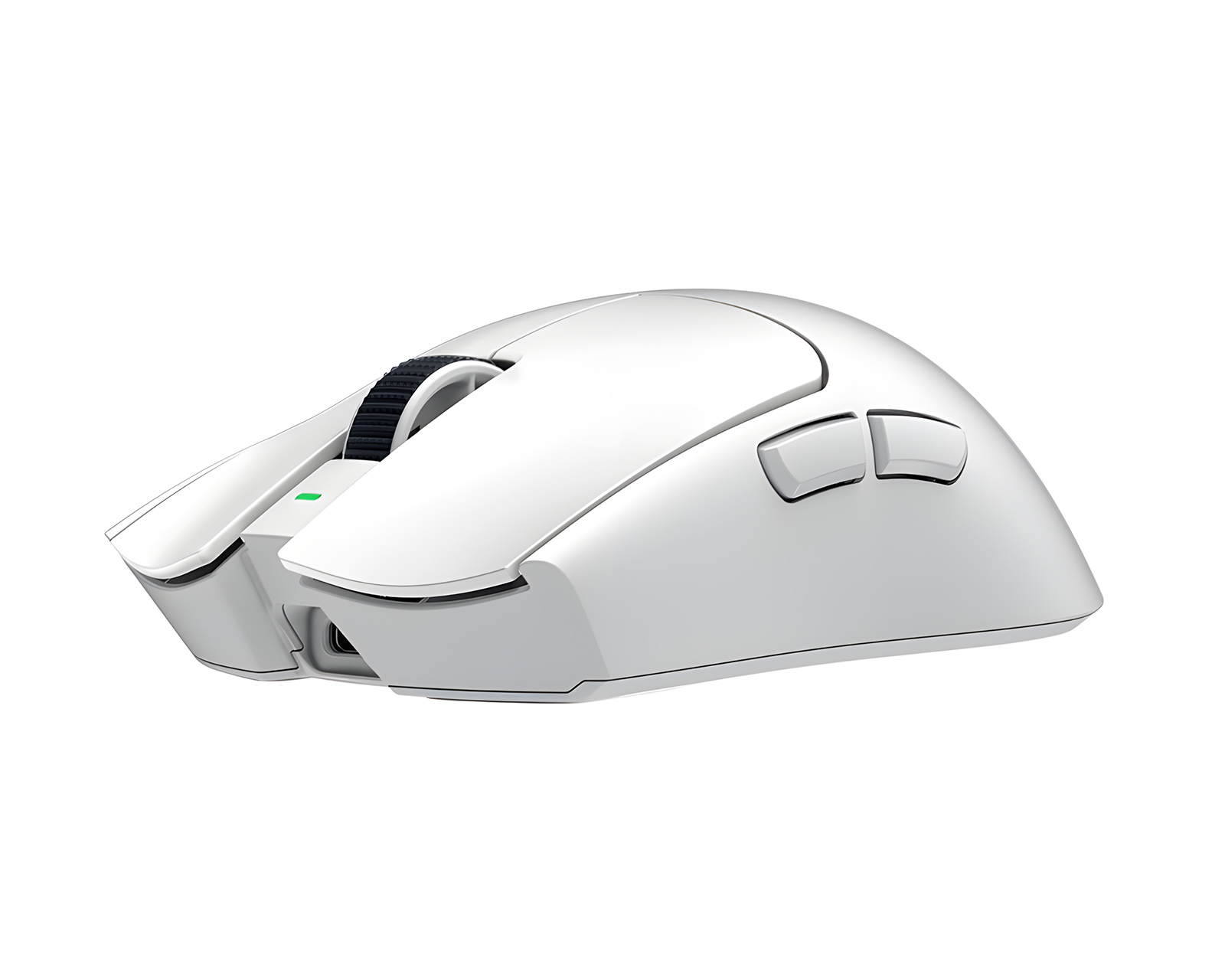 Viper V4 Pro Wireless is a wireless mouse from Razer, designed for gamers seeking precision and speed. Equipped with the Razer Focus Pro 50K optical sensor, it offers a DPI level of up to 50,000, ensuring a highly responsive gaming experience. Weighing only 49 grams and with a battery life of 180 hours, it is optimal for long gaming sessions.The build quality is high, with components such as Razer™ optical switches that withstand over 100 million clicks, providing durability and reliability in gaming. The mouse features an asymmetric cut-off that allows for adjusting lift-off and landing distances, giving a customized feel. The smart tracking guarantees a consistent lift distance on all surfaces. The connection via dongle is optimized for better stability and signal strength, ensuring the mouse always performs flawlessly under pressure.